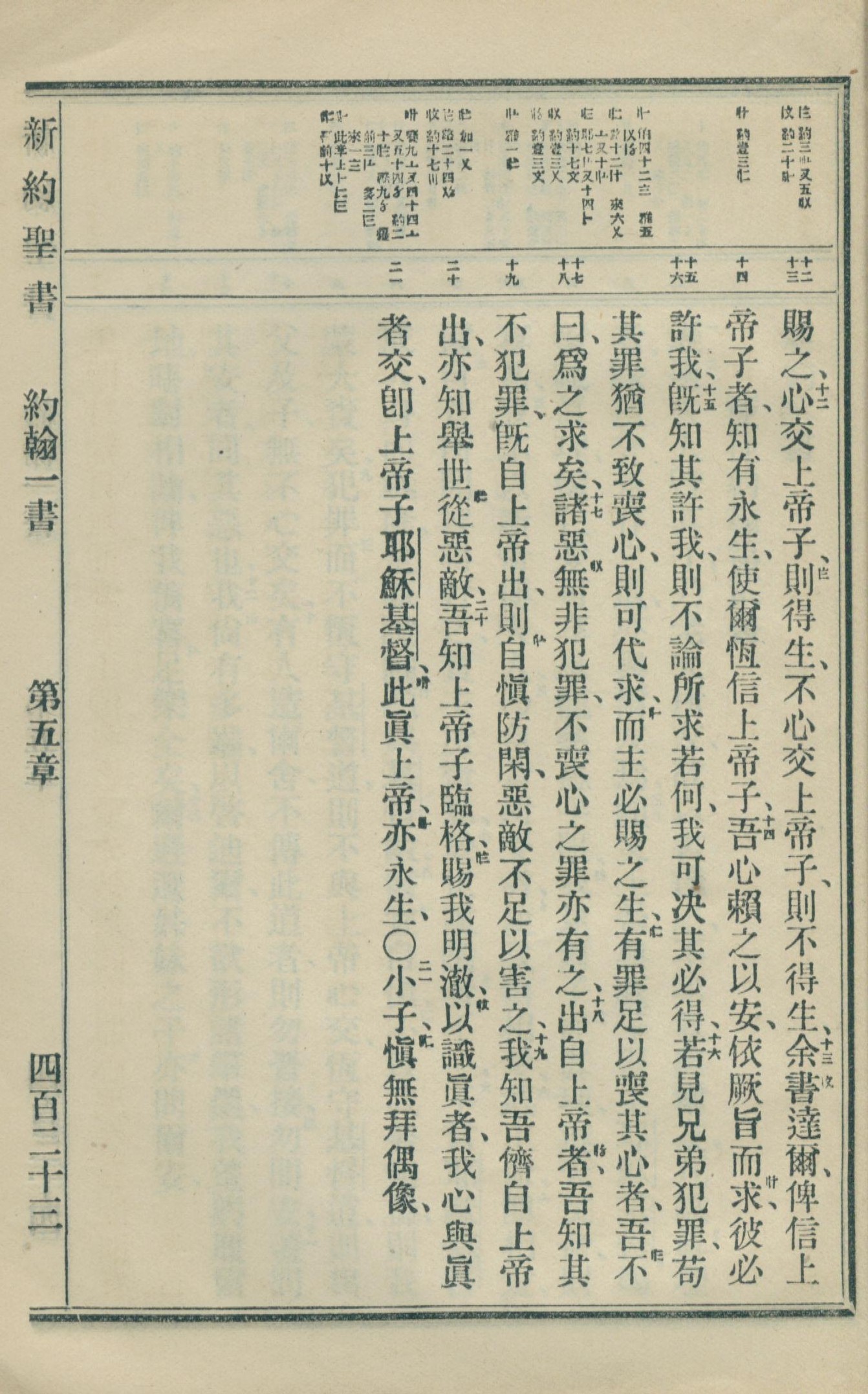 1918年新約全書(文理委辦譯本串珠版) 約翰一書 5 章 12 節到 5 章 21 節