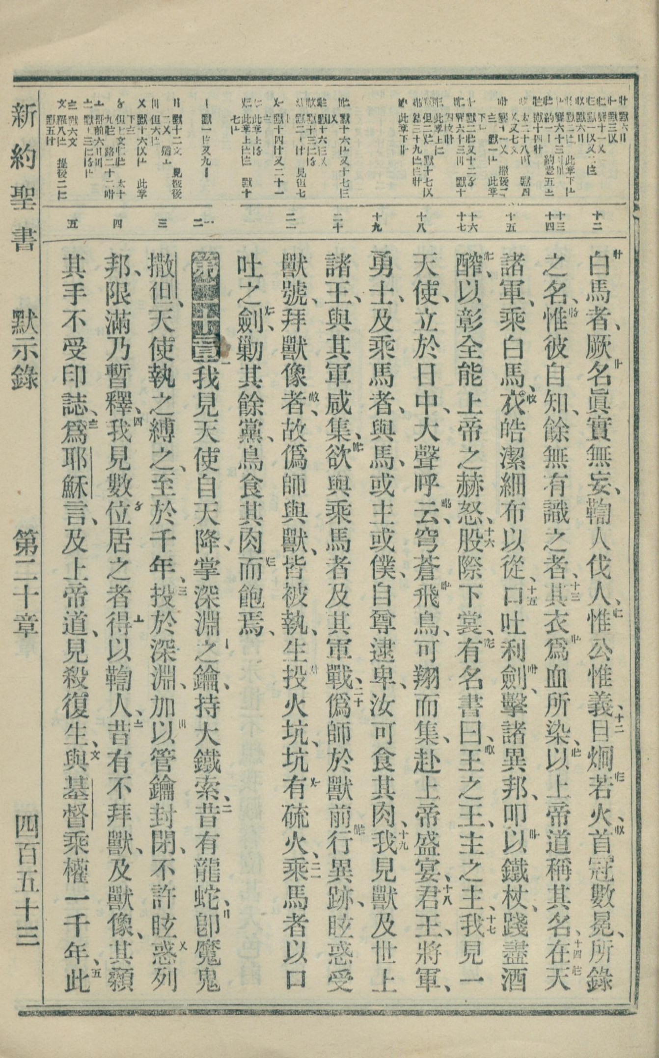 1918年新約全書(文理委辦譯本串珠版) 啟示錄 19 章 12 節到 20 章 5 節