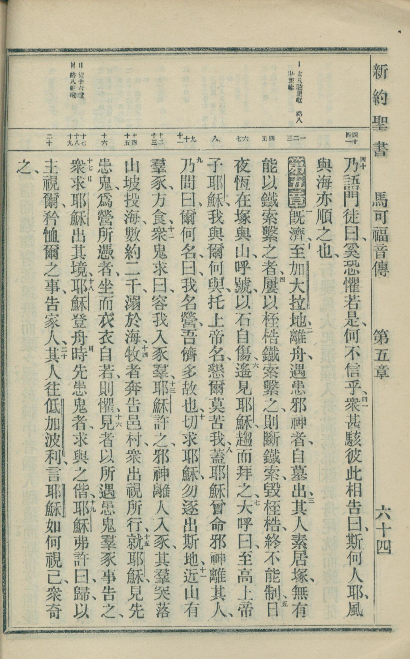 1918年新約全書(文理委辦譯本串珠版) 馬可福音 4 章 40 節到 5 章 20 節