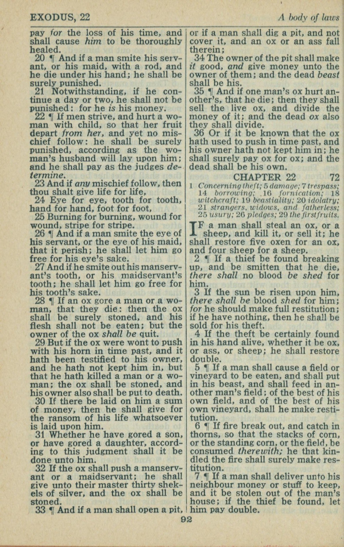 1946年King James Version 出埃及記 21 章 20 節到 22 章 7 節