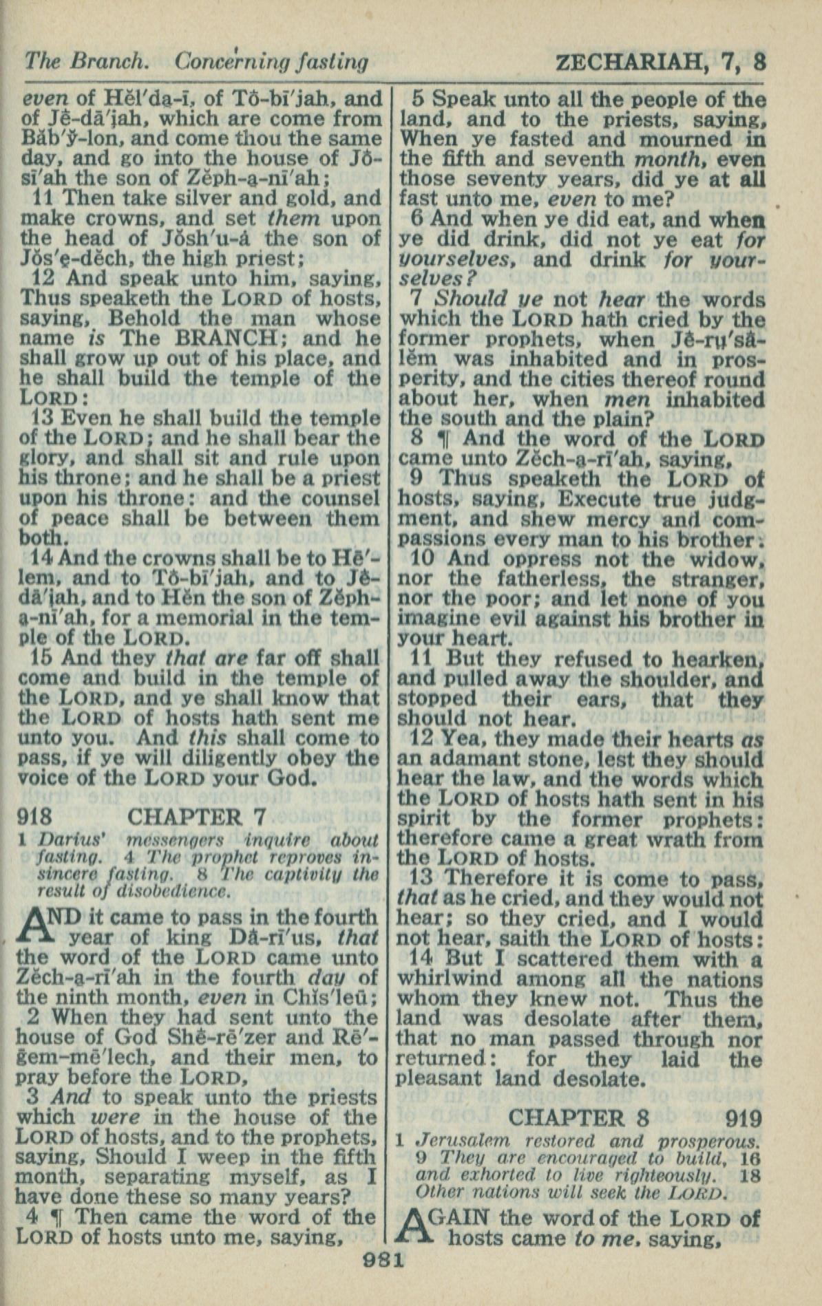 1946年King James Version 撒迦利亞書 6 章 11 節到 8 章 1 節