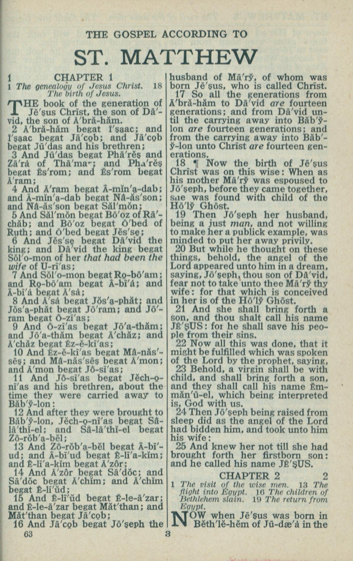 1946年King James Version 馬太福音 1 章 1 節到 2 章 1 節