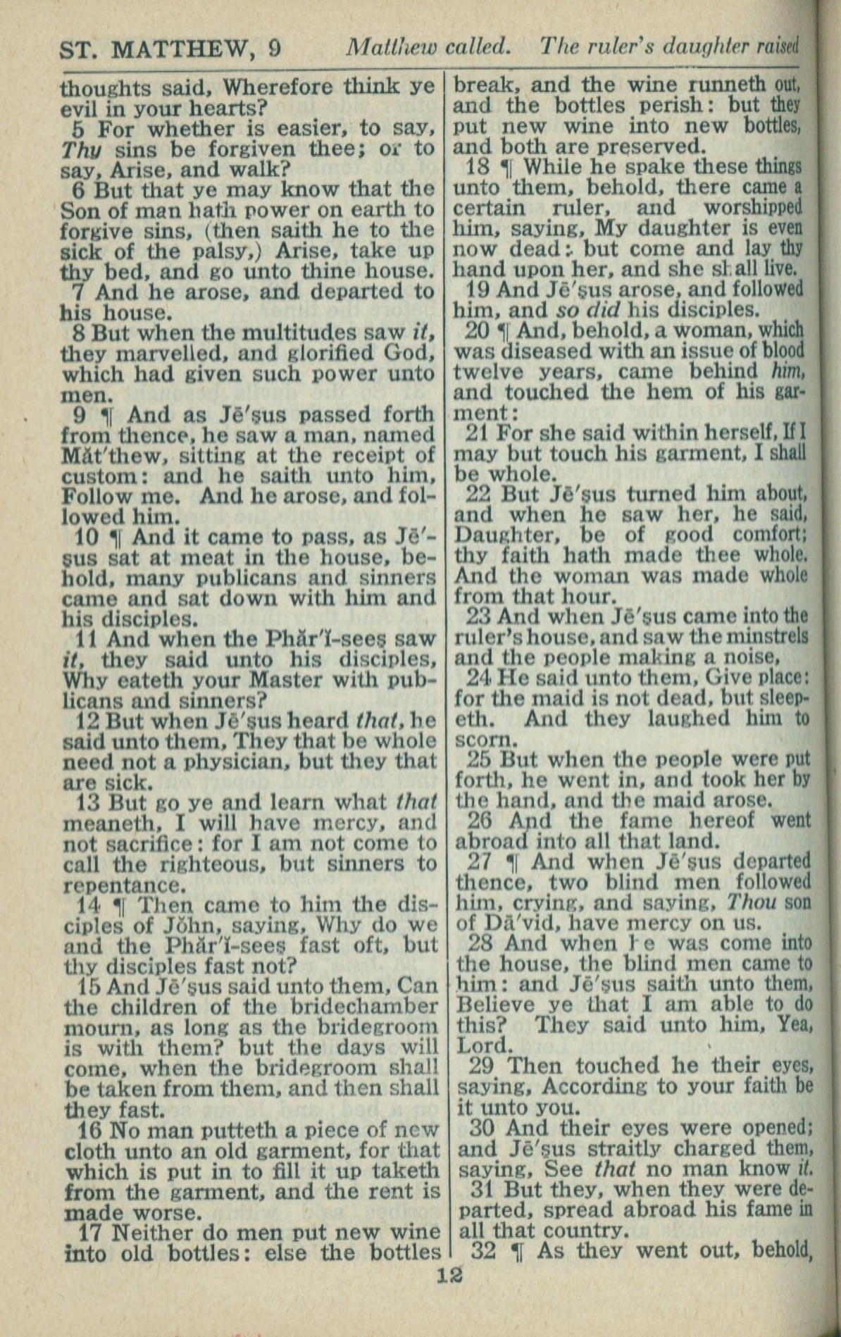 1946年King James Version 馬太福音 9 章 5 節到 9 章 32 節