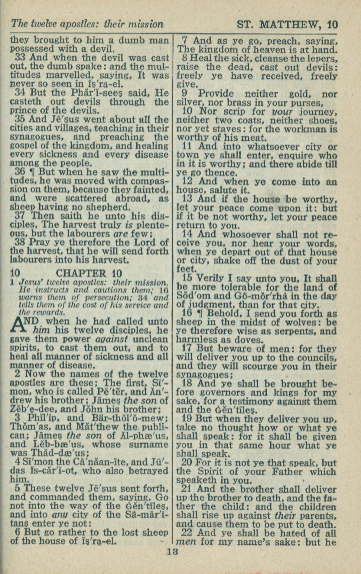 1946年King James Version 馬太福音 9 章 33 節到 10 章 22 節