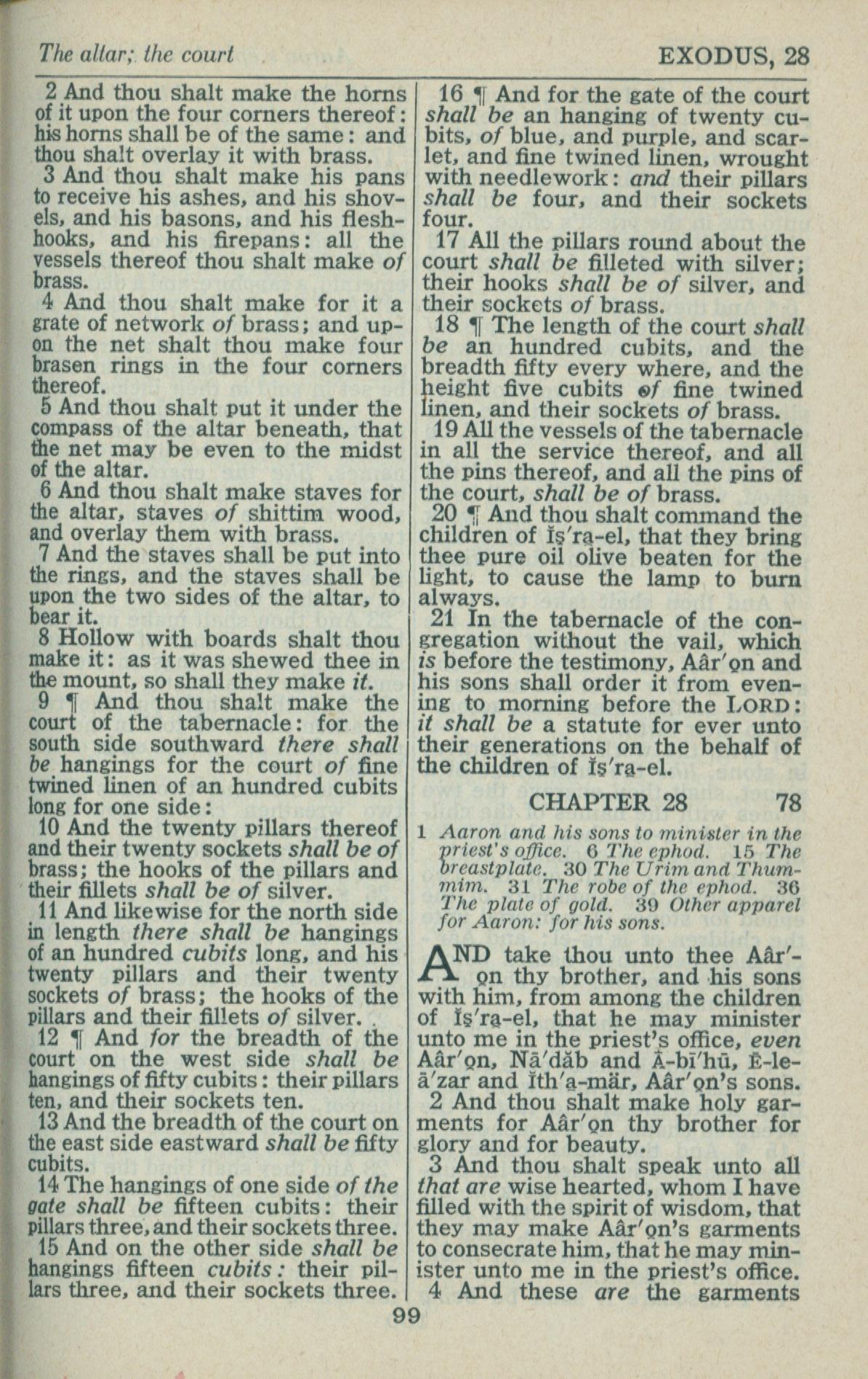 1946年King James Version 出埃及記 27 章 2 節到 28 章 4 節