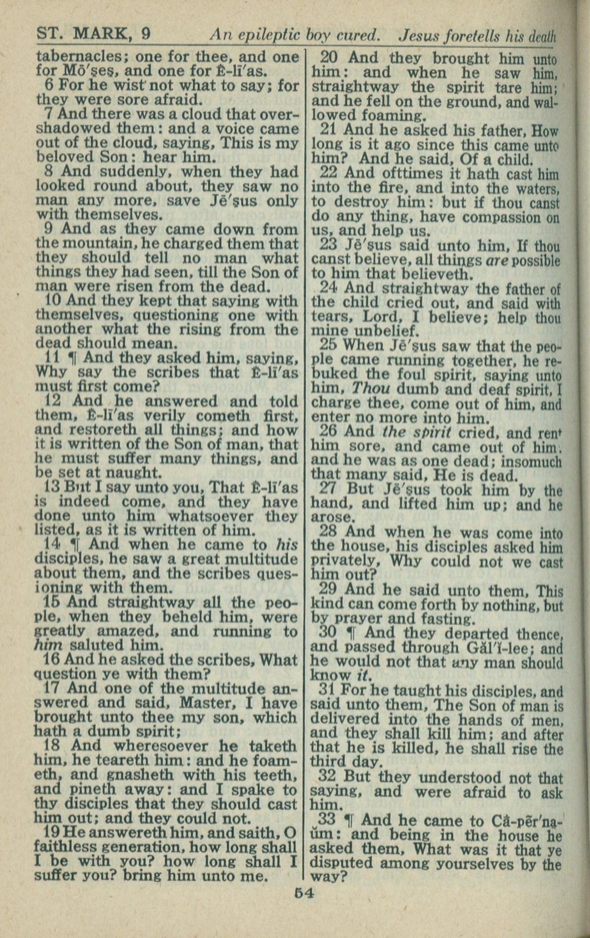 1946年King James Version 馬可福音 9 章 6 節到 9 章 33 節
