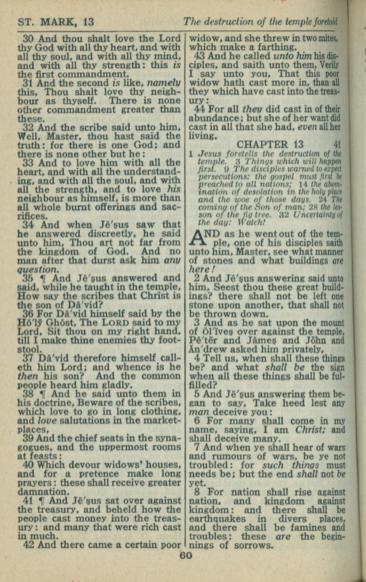1946年King James Version 馬可福音 12 章 30 節到 13 章 8 節