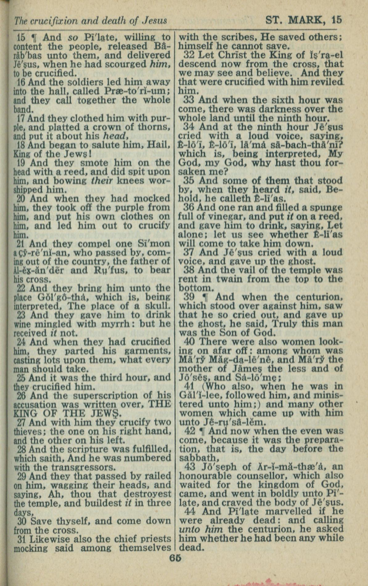 1946年King James Version 馬可福音 15 章 15 節到 15 章 44 節