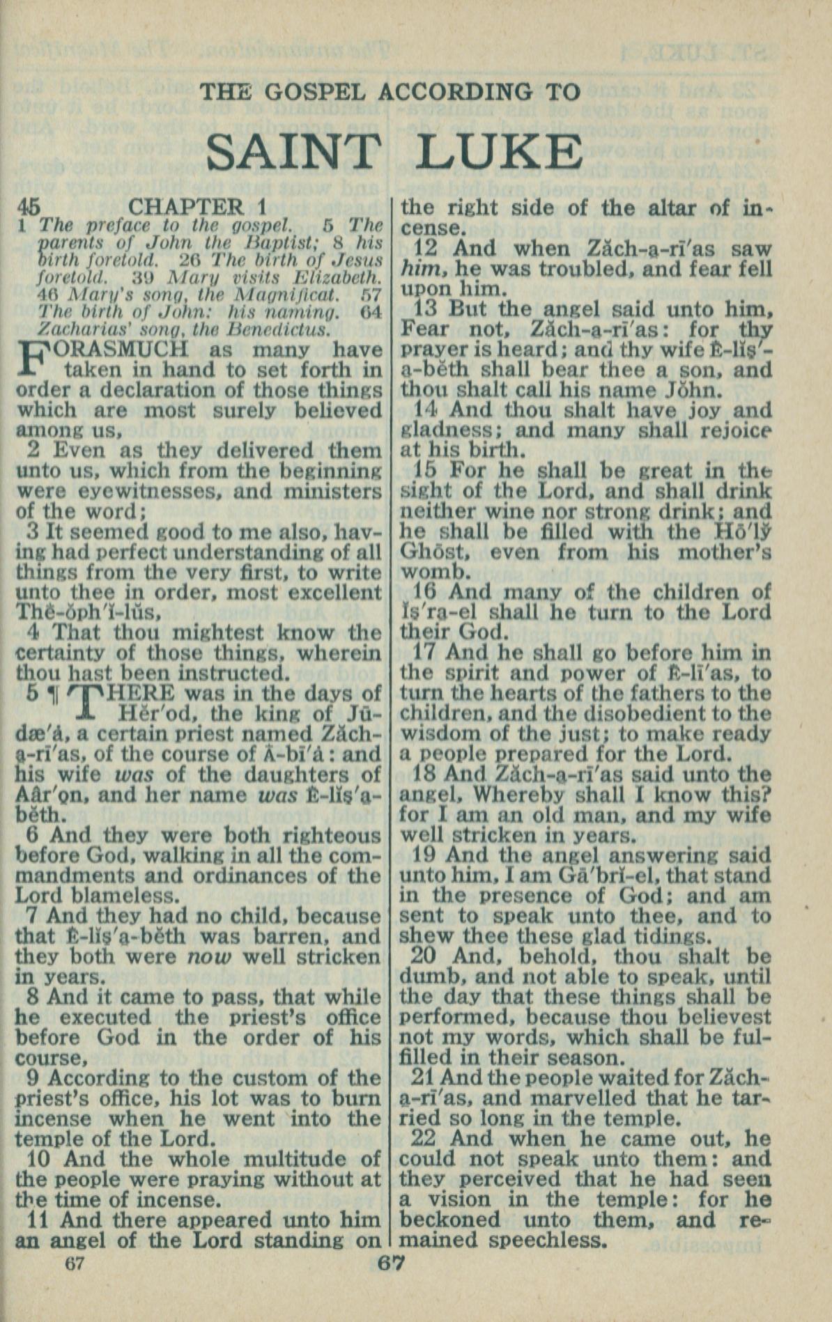 1946年King James Version 路加福音 1 章 1 節到 1 章 22 節