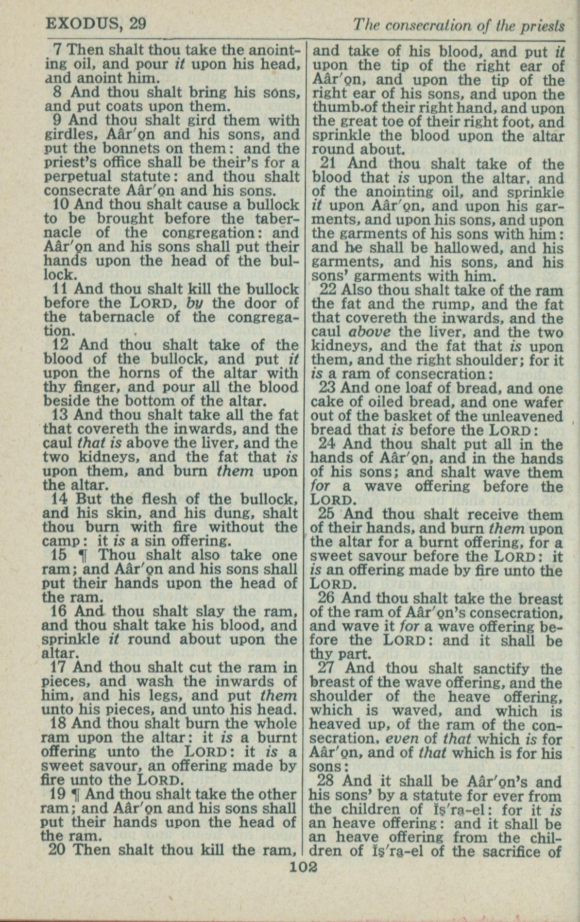 1946年King James Version 出埃及記 29 章 7 節到 29 章 28 節