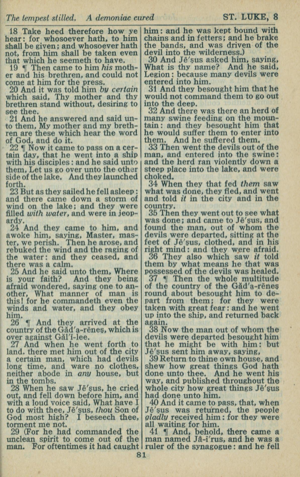 1946年King James Version 路加福音 8 章 18 節到 8 章 41 節