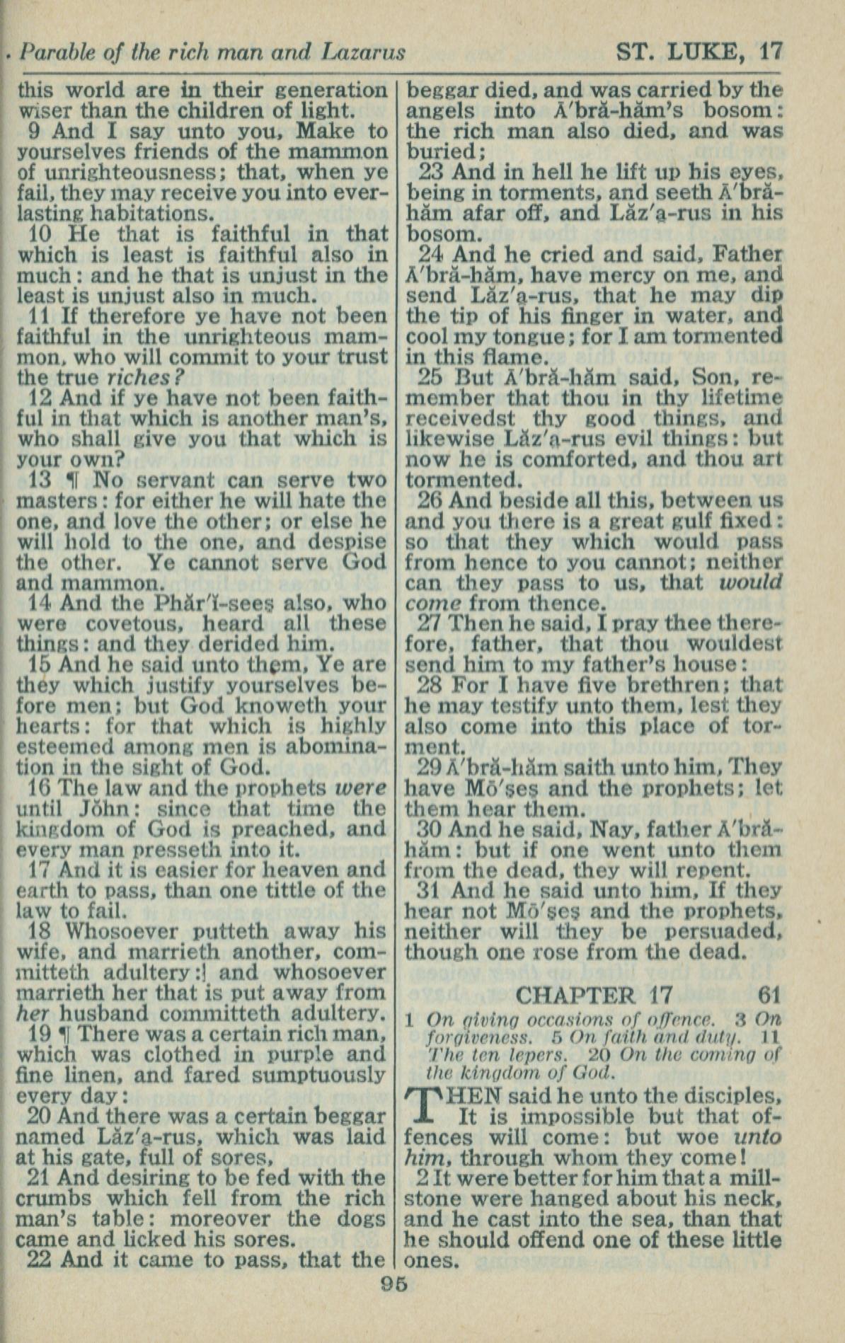 1946年King James Version 路加福音 16 章 9 節到 17 章 2 節