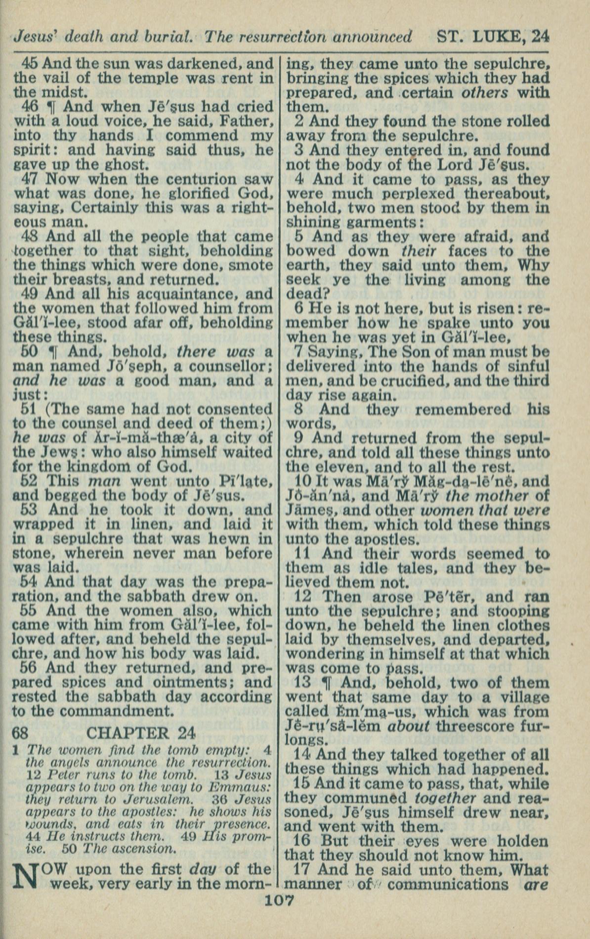 1946年King James Version 路加福音 23 章 45 節到 24 章 17 節