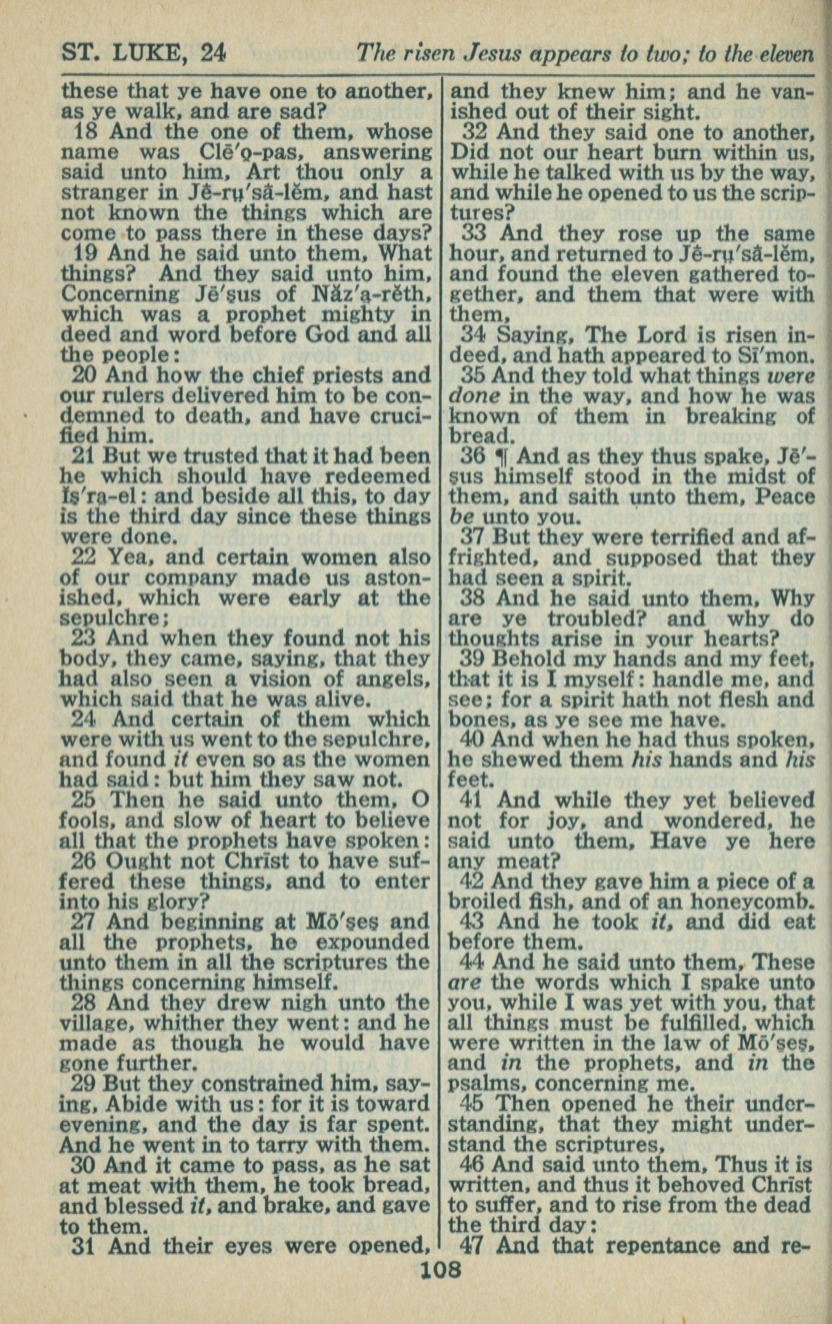 1946年King James Version 路加福音 24 章 18 節到 24 章 47 節