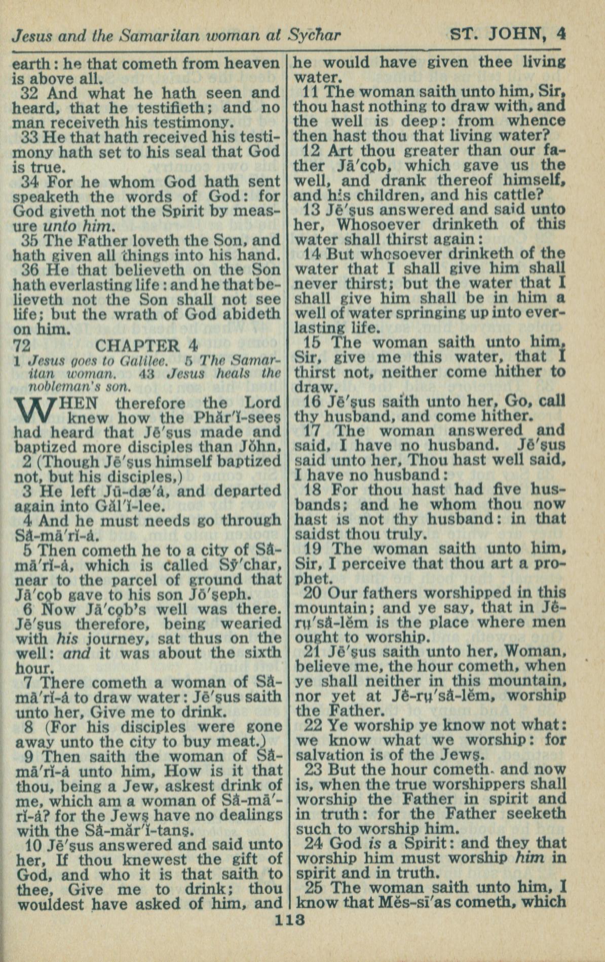 1946年King James Version 約翰福音 3 章 32 節到 4 章 25 節