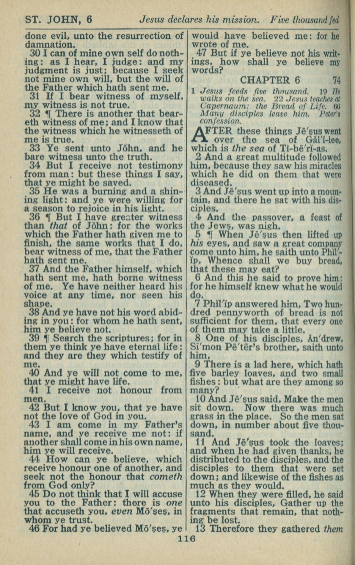 1946年King James Version 約翰福音 5 章 30 節到 6 章 13 節