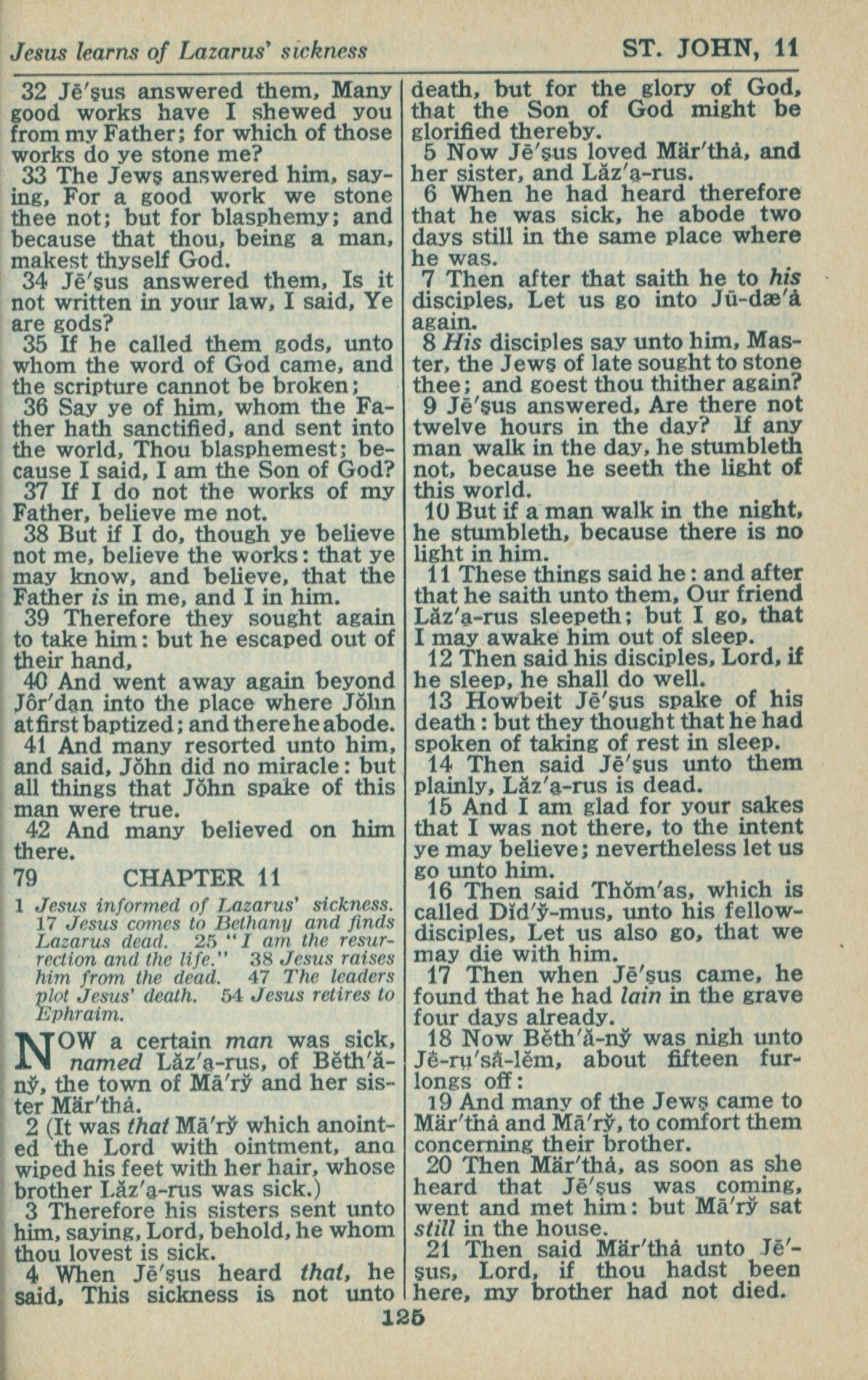 1946年King James Version 約翰福音 10 章 32 節到 11 章 21 節