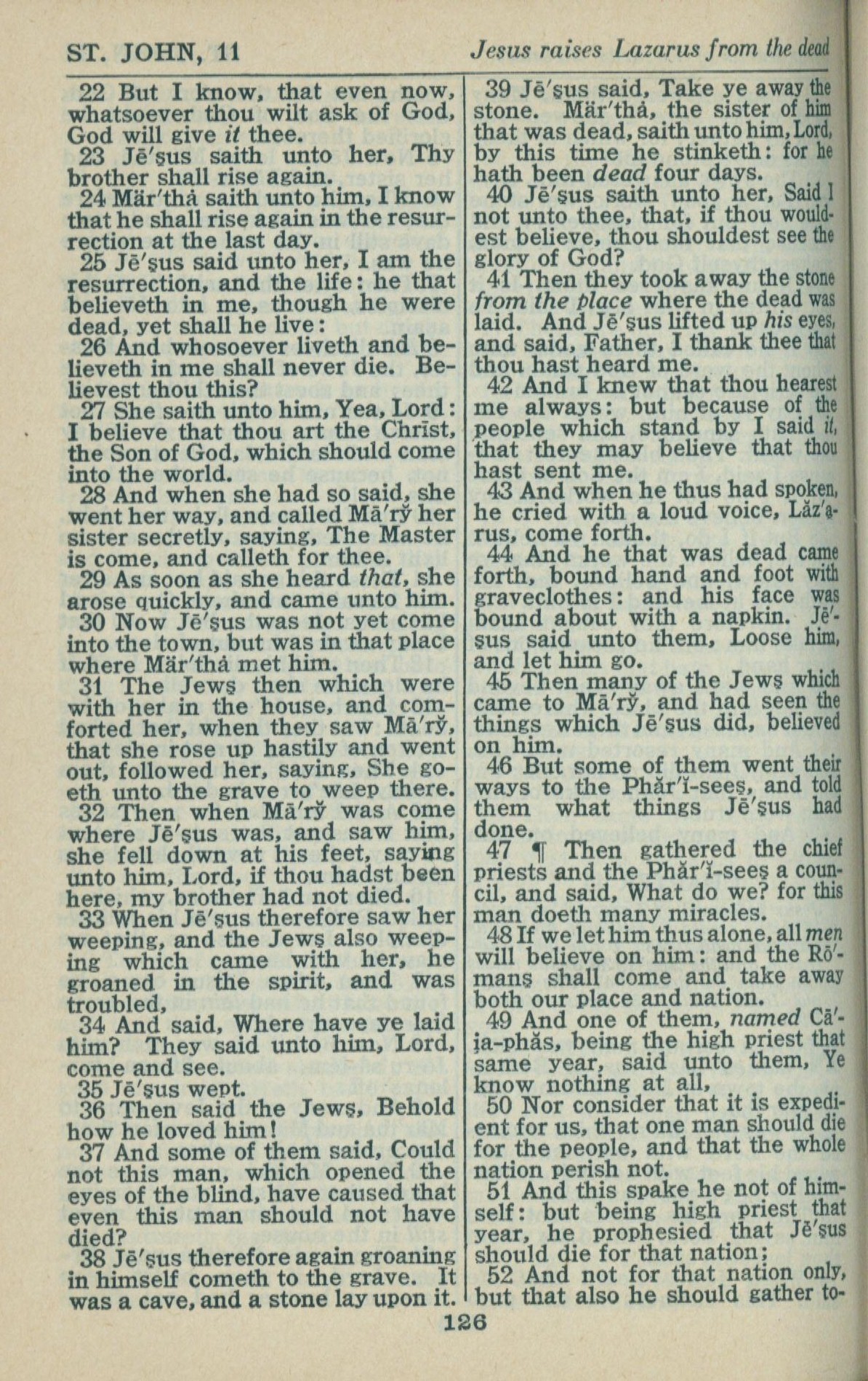 1946年King James Version 約翰福音 11 章 22 節到 11 章 52 節