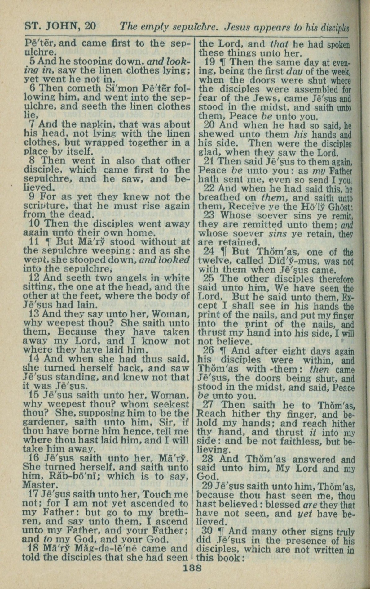 1946年King James Version 約翰福音 20 章 5 節到 20 章 30 節