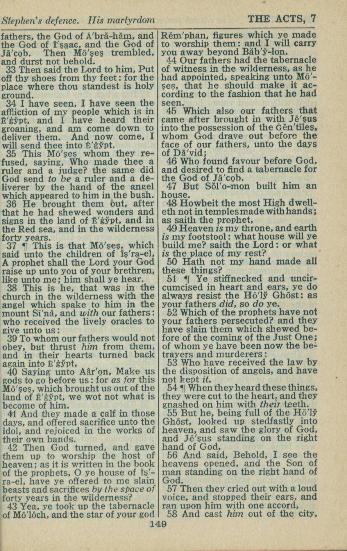 1946年King James Version 使徒行傳 7 章 33 節到 7 章 58 節