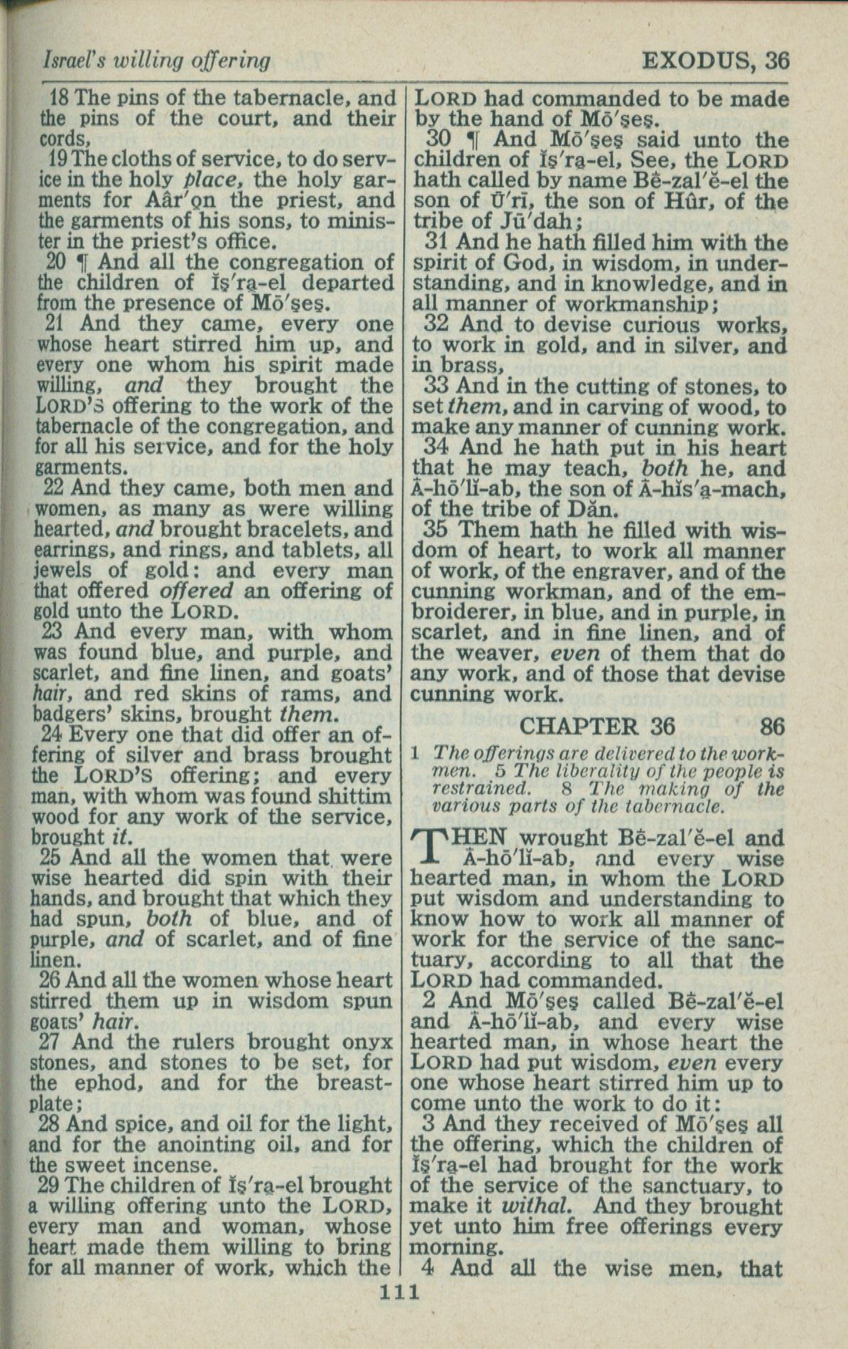 1946年King James Version 出埃及記 35 章 18 節到 36 章 4 節