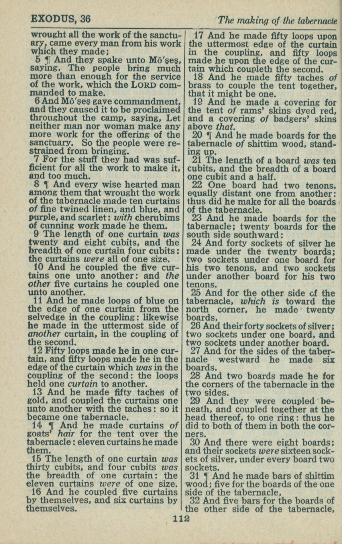 1946年King James Version 出埃及記 36 章 5 節到 36 章 32 節