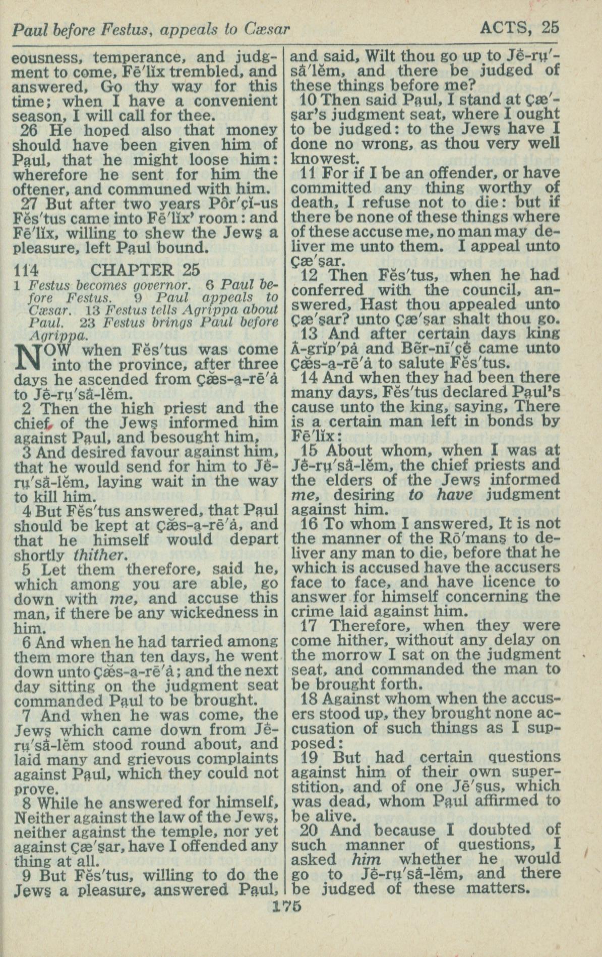 1946年King James Version 使徒行傳 24 章 26 節到 25 章 20 節