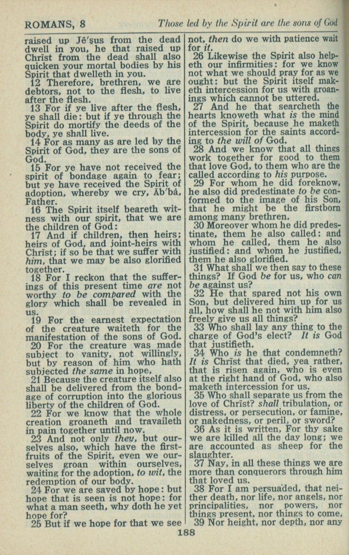 1946年King James Version 羅馬書 8 章 12 節到 8 章 39 節