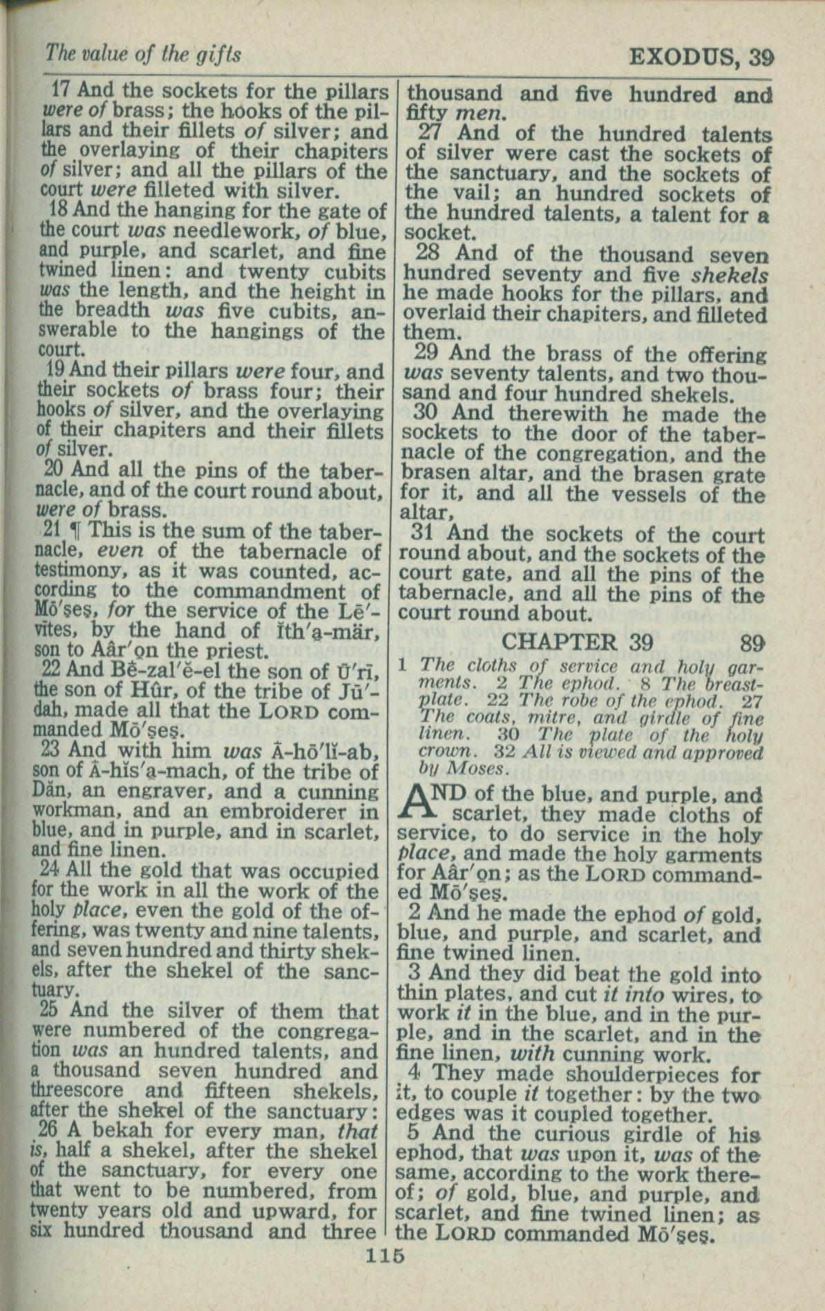 1946年King James Version 出埃及記 38 章 17 節到 39 章 5 節