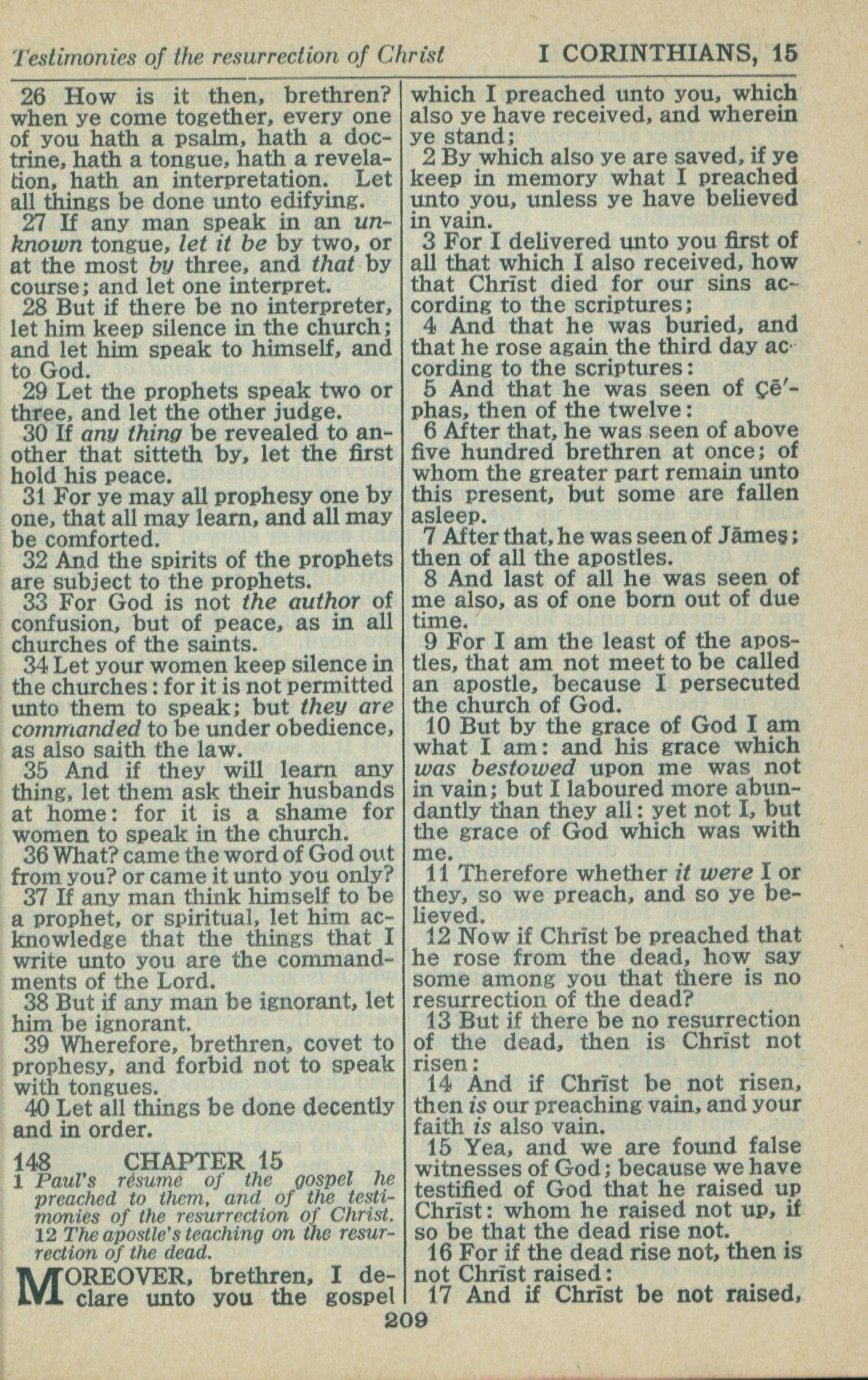1946年King James Version 哥林多前書 14 章 26 節到 15 章 17 節