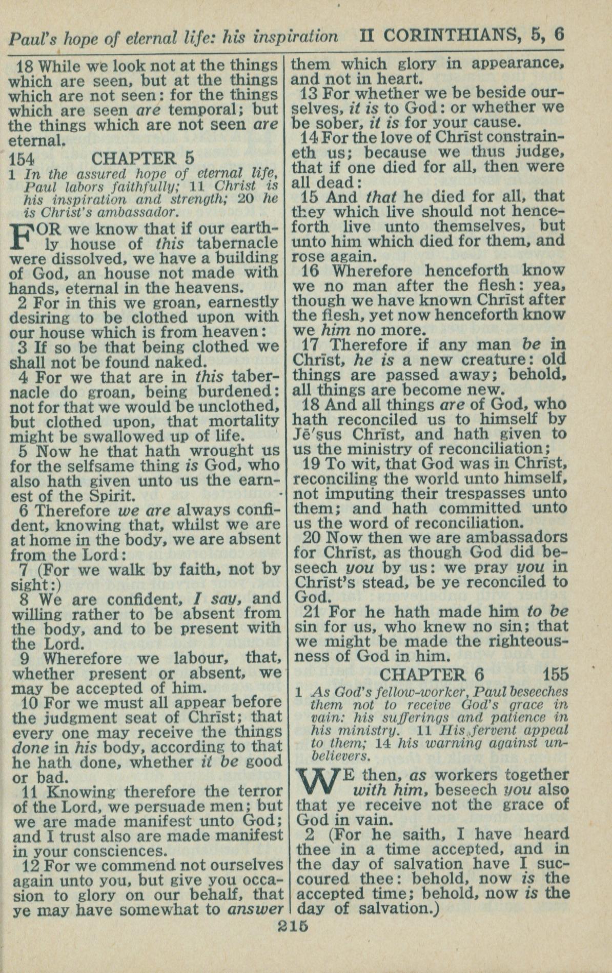 1946年King James Version 哥林多後書 4 章 18 節到 6 章 2 節
