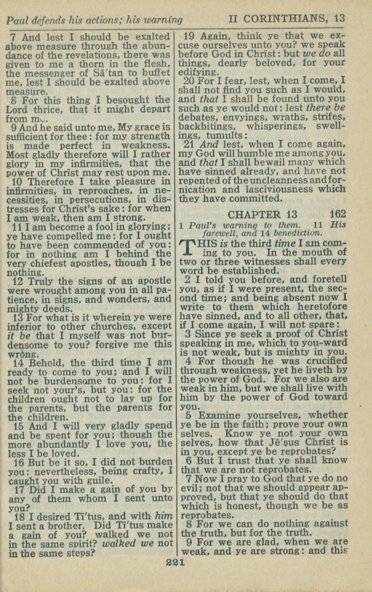 1946年King James Version 哥林多後書 12 章 7 節到 13 章 9 節