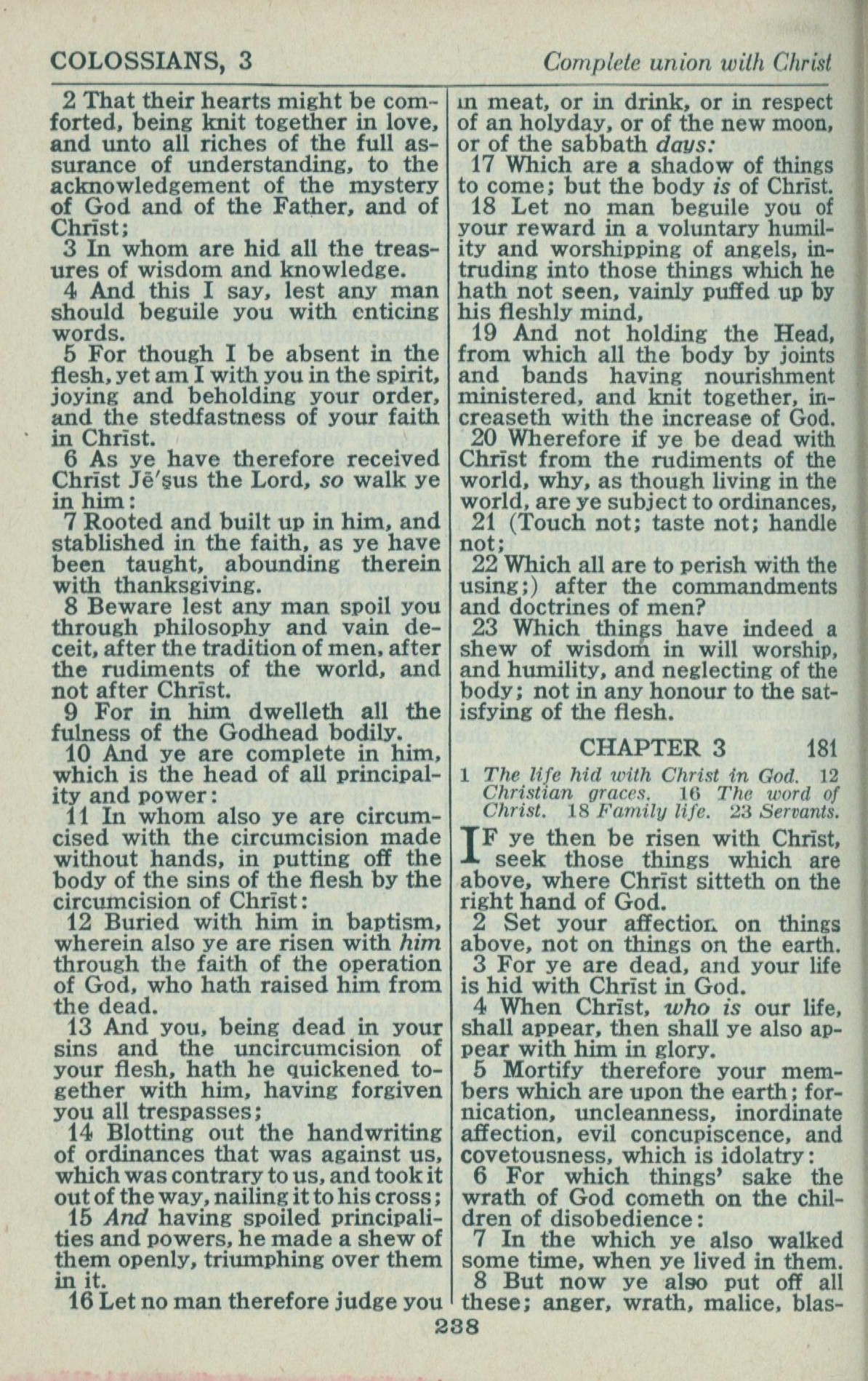 1946年King James Version 歌羅西書 2 章 2 節到 3 章 8 節