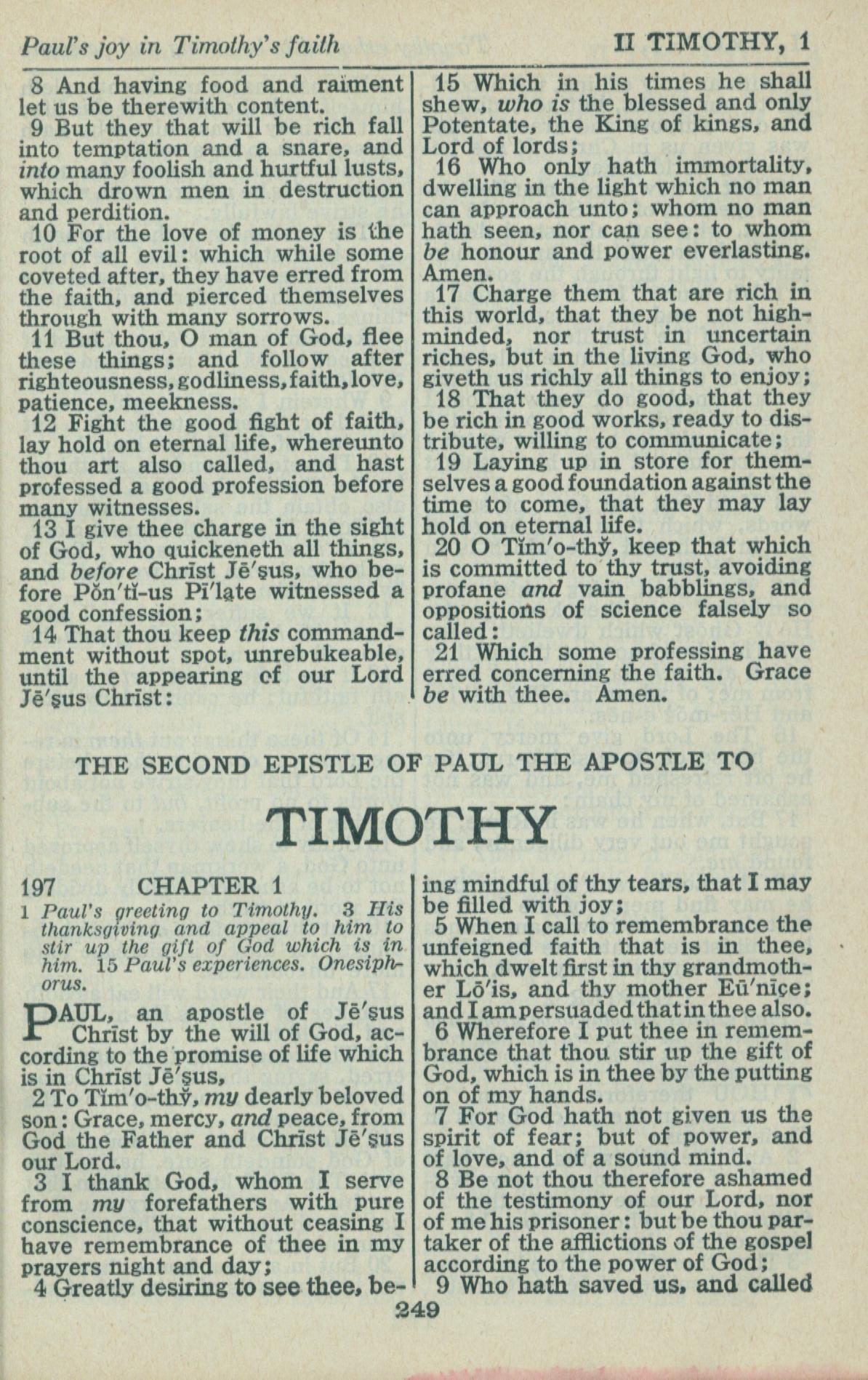 1946年King James Version 提摩太後書 1 章 1 節到 1 章 9 節