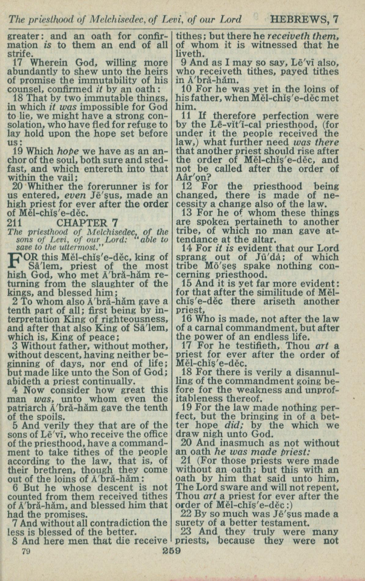 1946年King James Version 希伯來書 6 章 17 節到 7 章 23 節