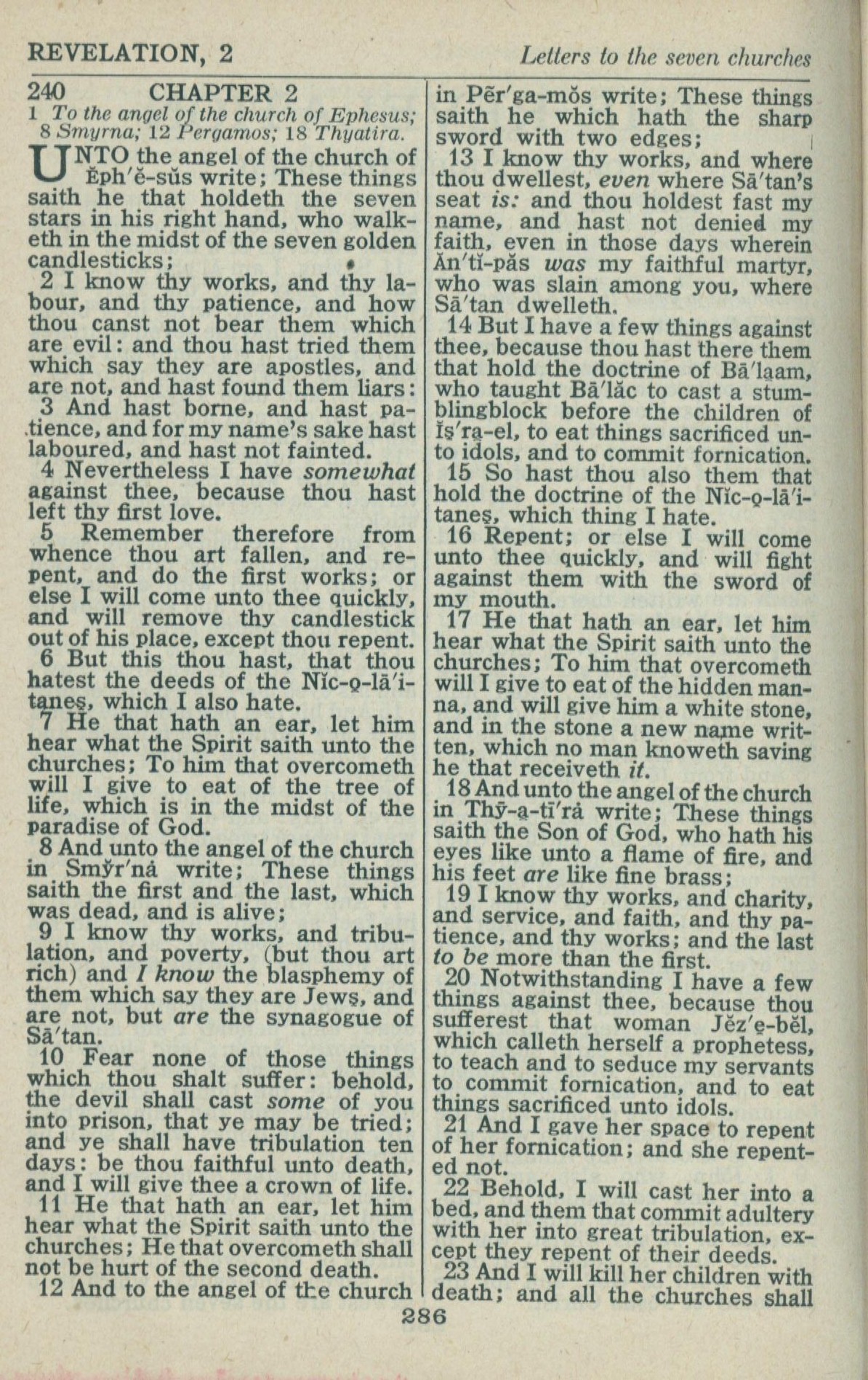 1946年King James Version 啟示錄 2 章 1 節到 2 章 23 節