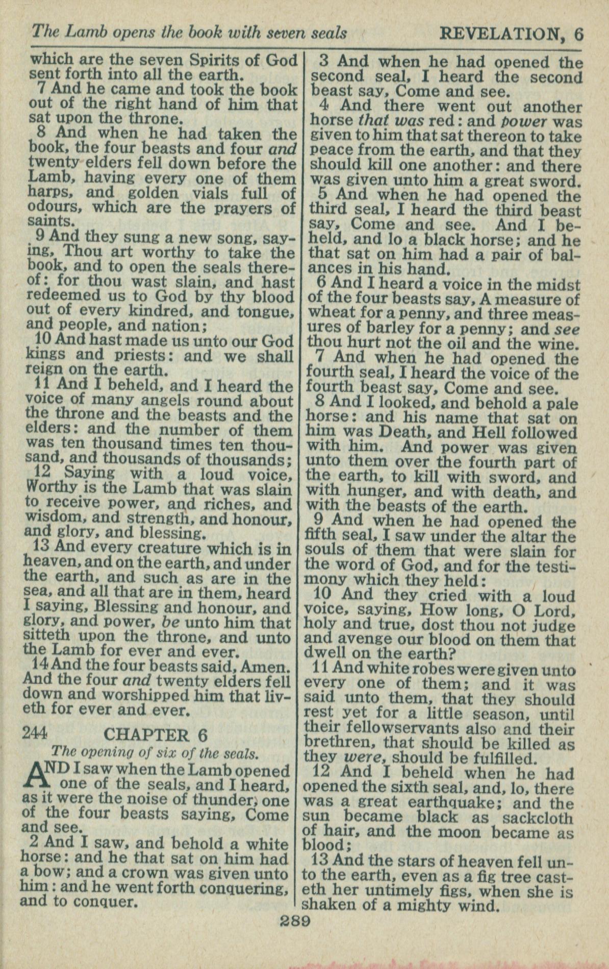 1946年King James Version 啟示錄 5 章 7 節到 6 章 13 節