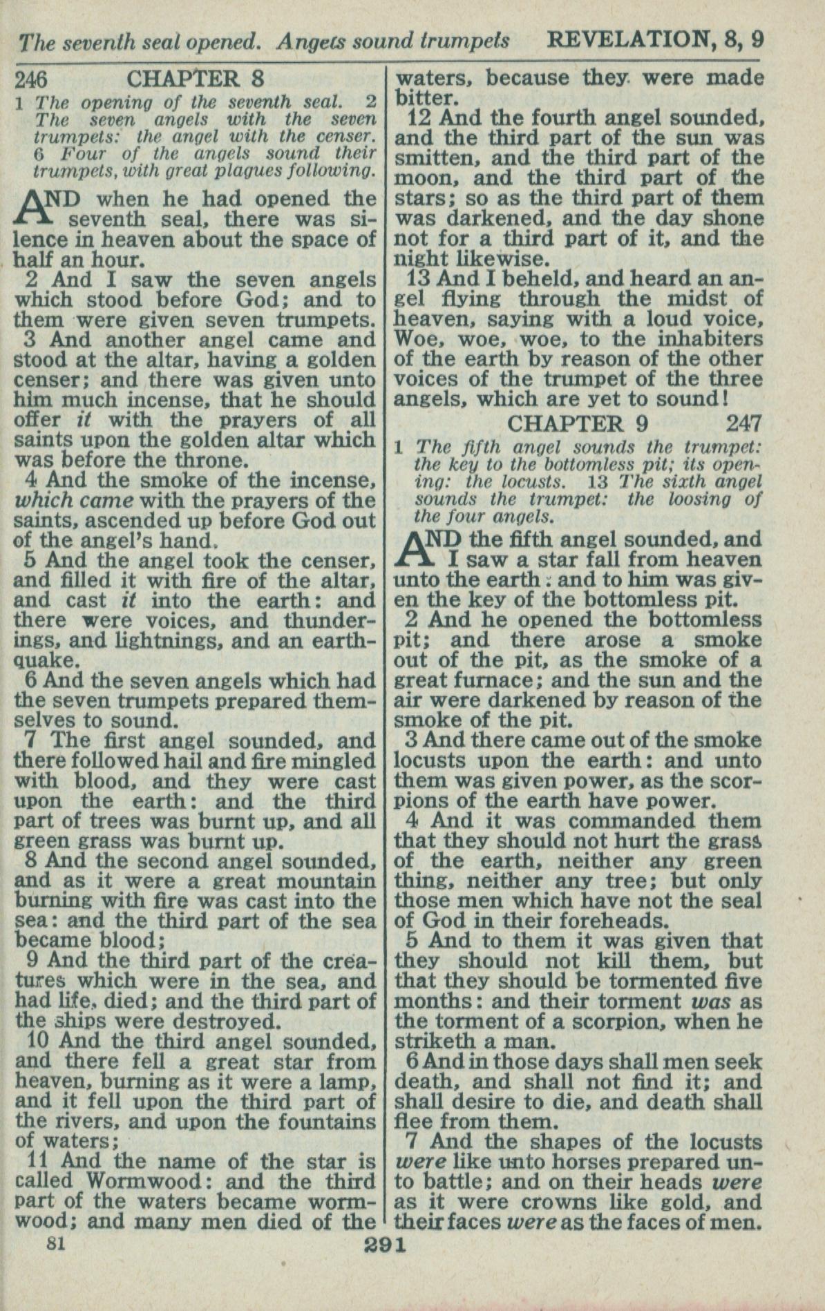 1946年King James Version 啟示錄 8 章 1 節到 9 章 7 節