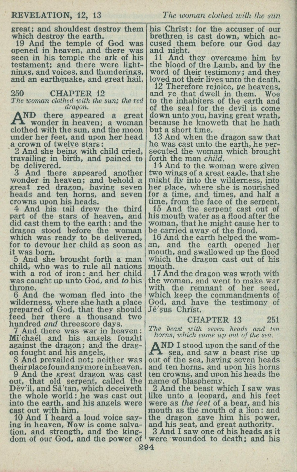 1946年King James Version 啟示錄 11 章 19 節到 13 章 3 節