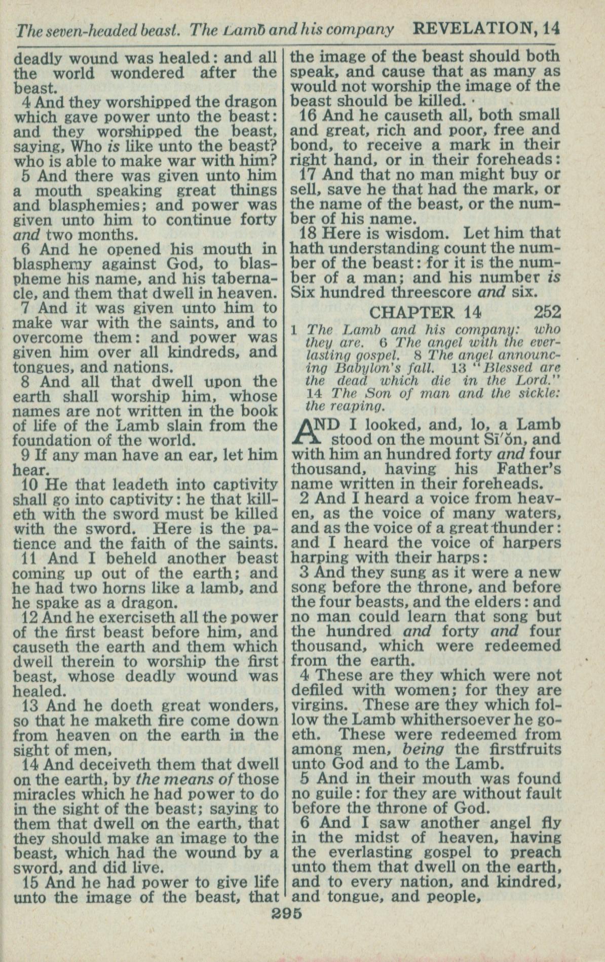 1946年King James Version 啟示錄 13 章 4 節到 14 章 6 節