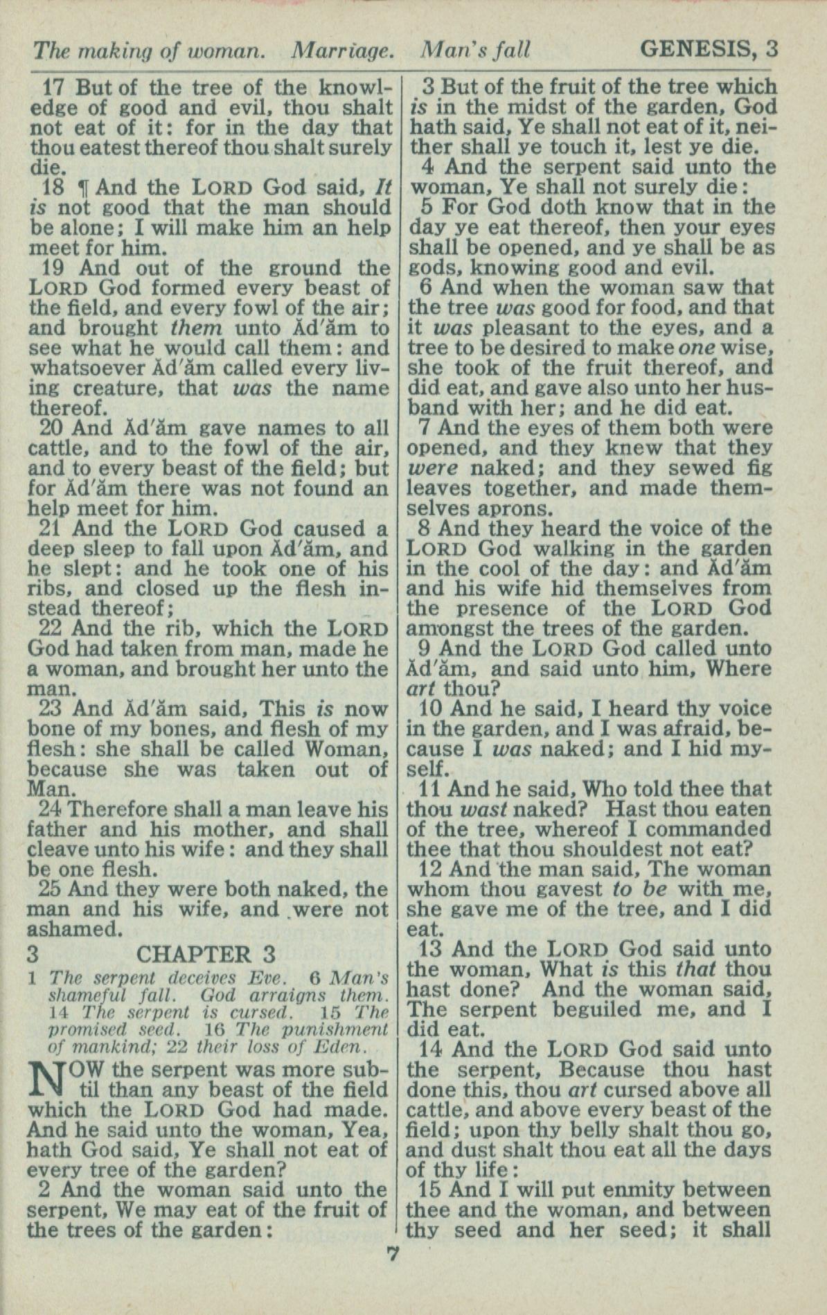 1946年King James Version 創世記 2 章 17 節到 3 章 15 節