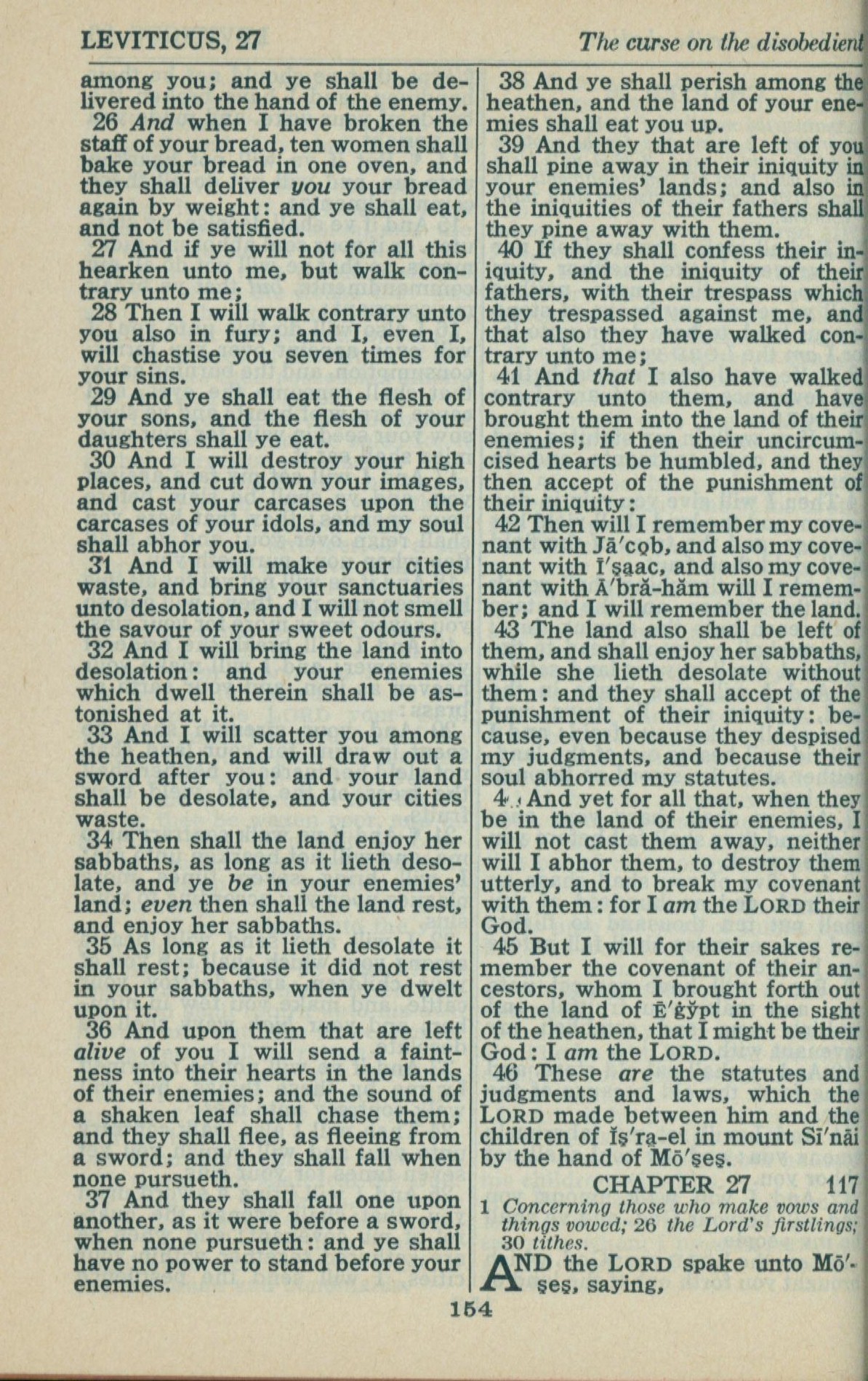 1946年King James Version 利未記 26 章 26 節到 27 章 1 節