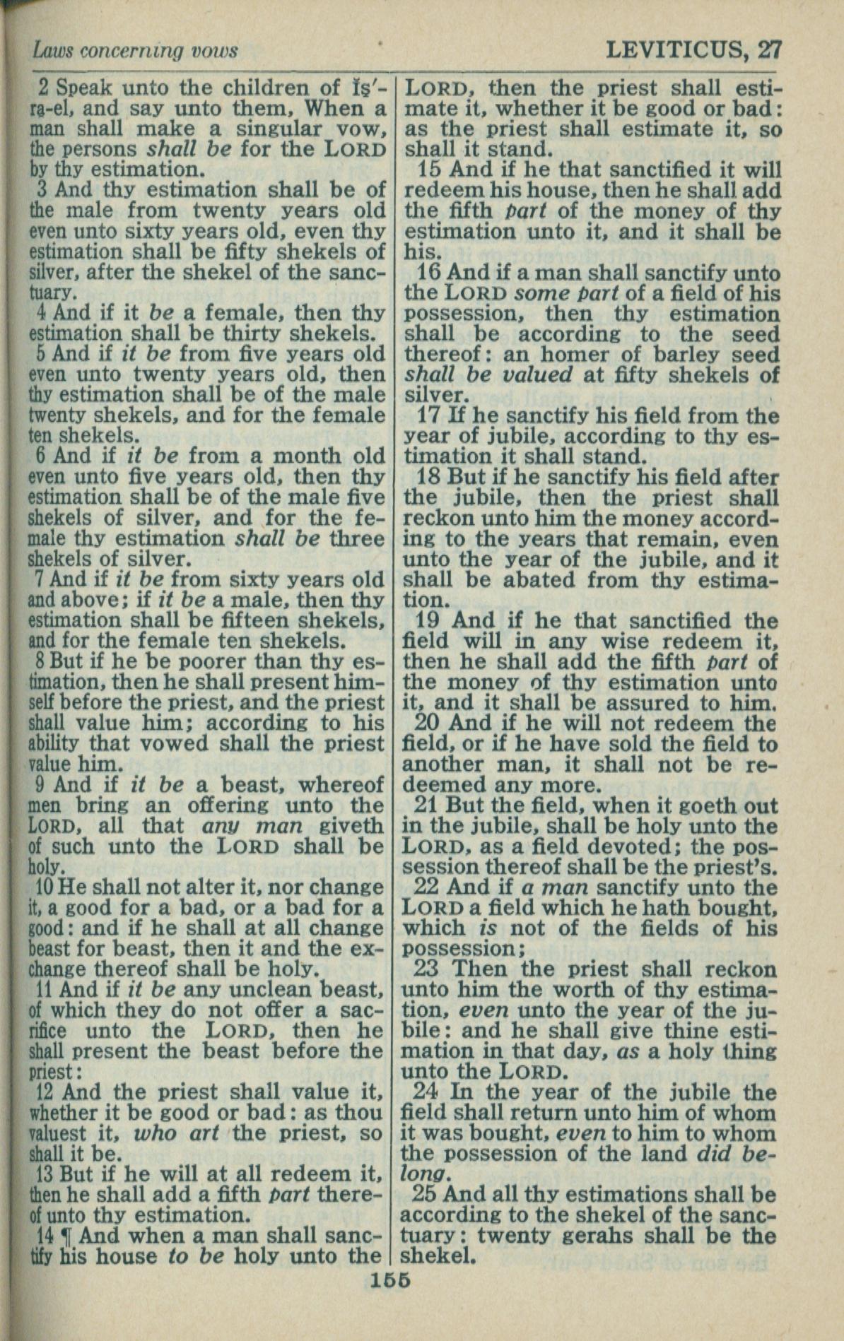 1946年King James Version 利未記 27 章 2 節到 27 章 25 節