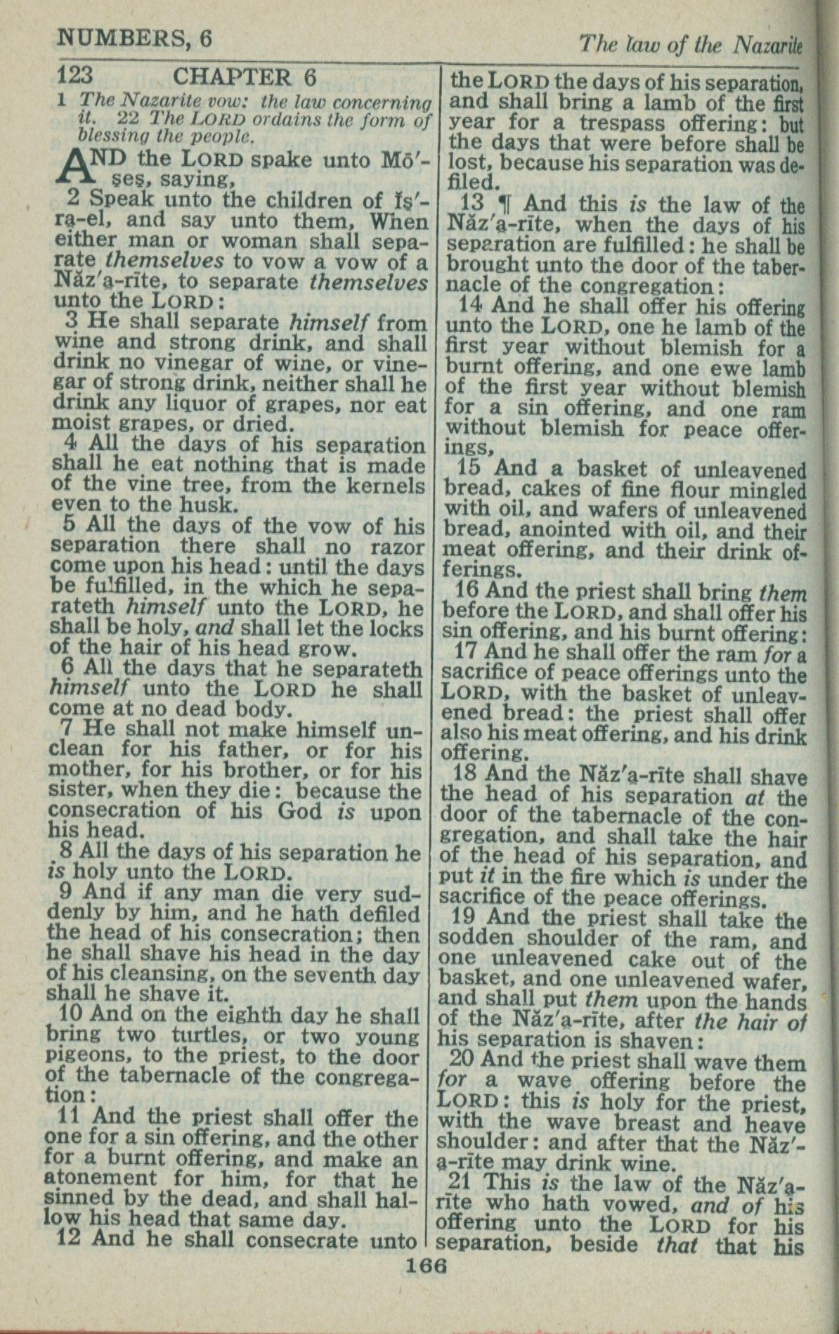 1946年King James Version 民數記 6 章 1 節到 6 章 21 節