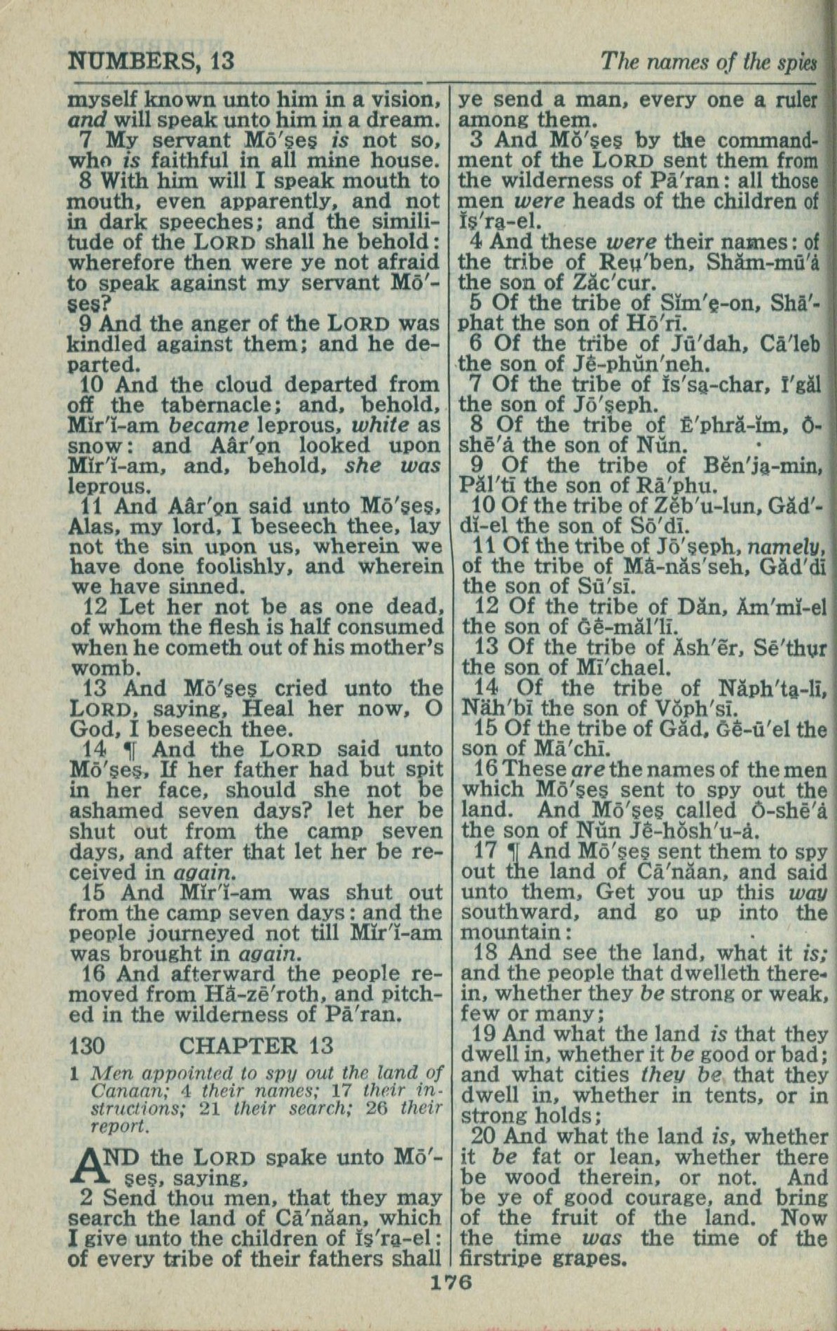 1946年King James Version 民數記 12 章 7 節到 13 章 20 節
