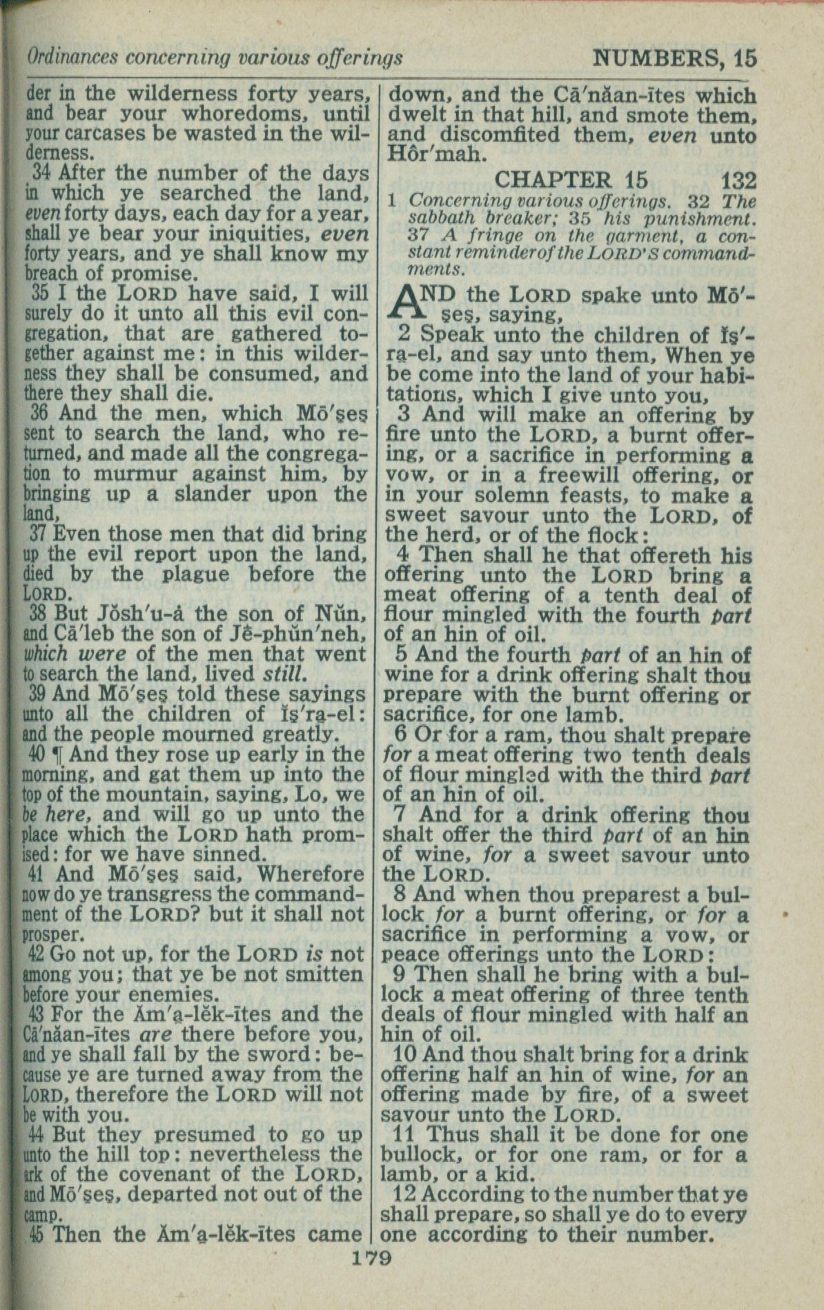 1946年King James Version 民數記 14 章 34 節到 15 章 12 節