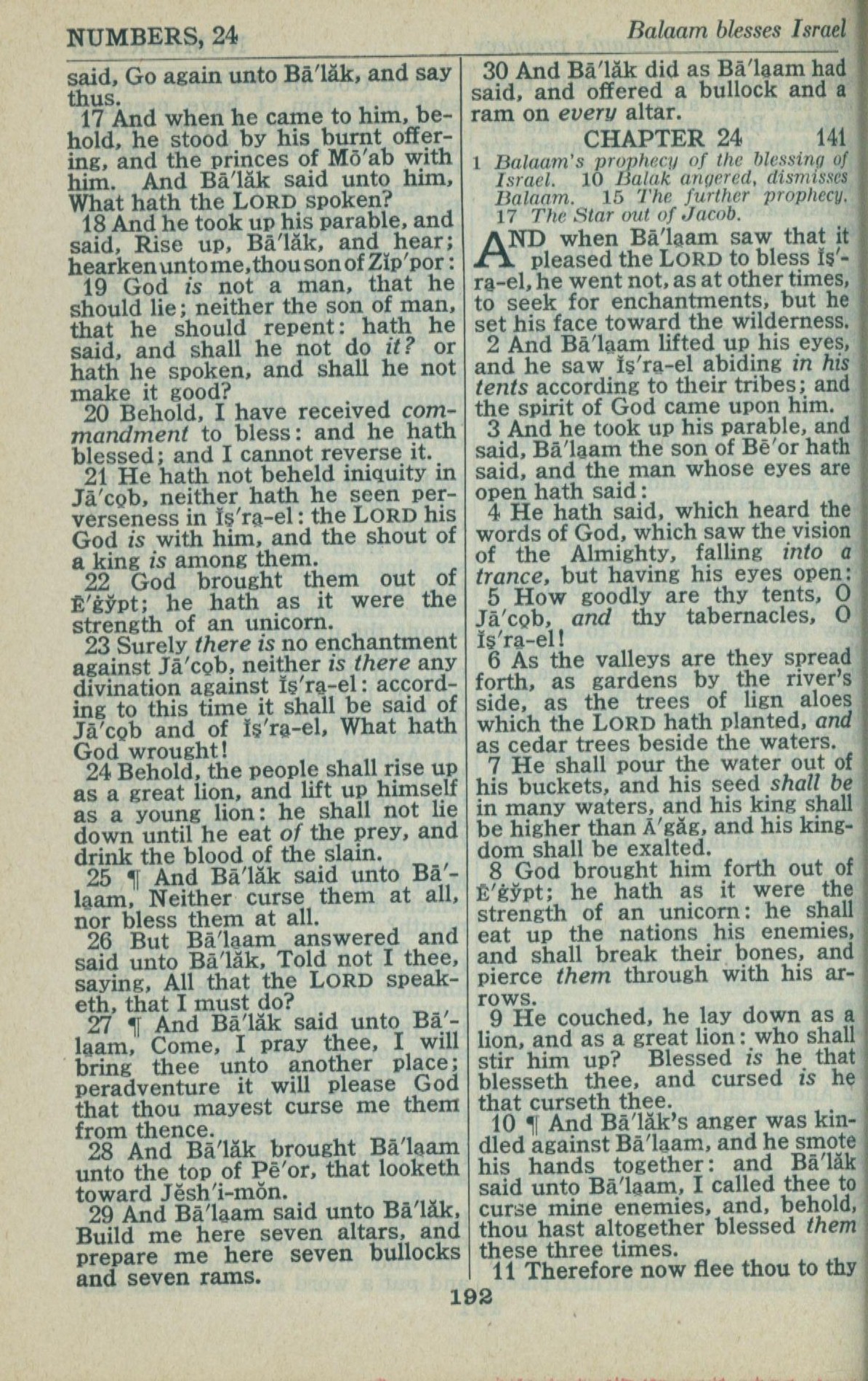 1946年King James Version 民數記 23 章 17 節到 24 章 11 節