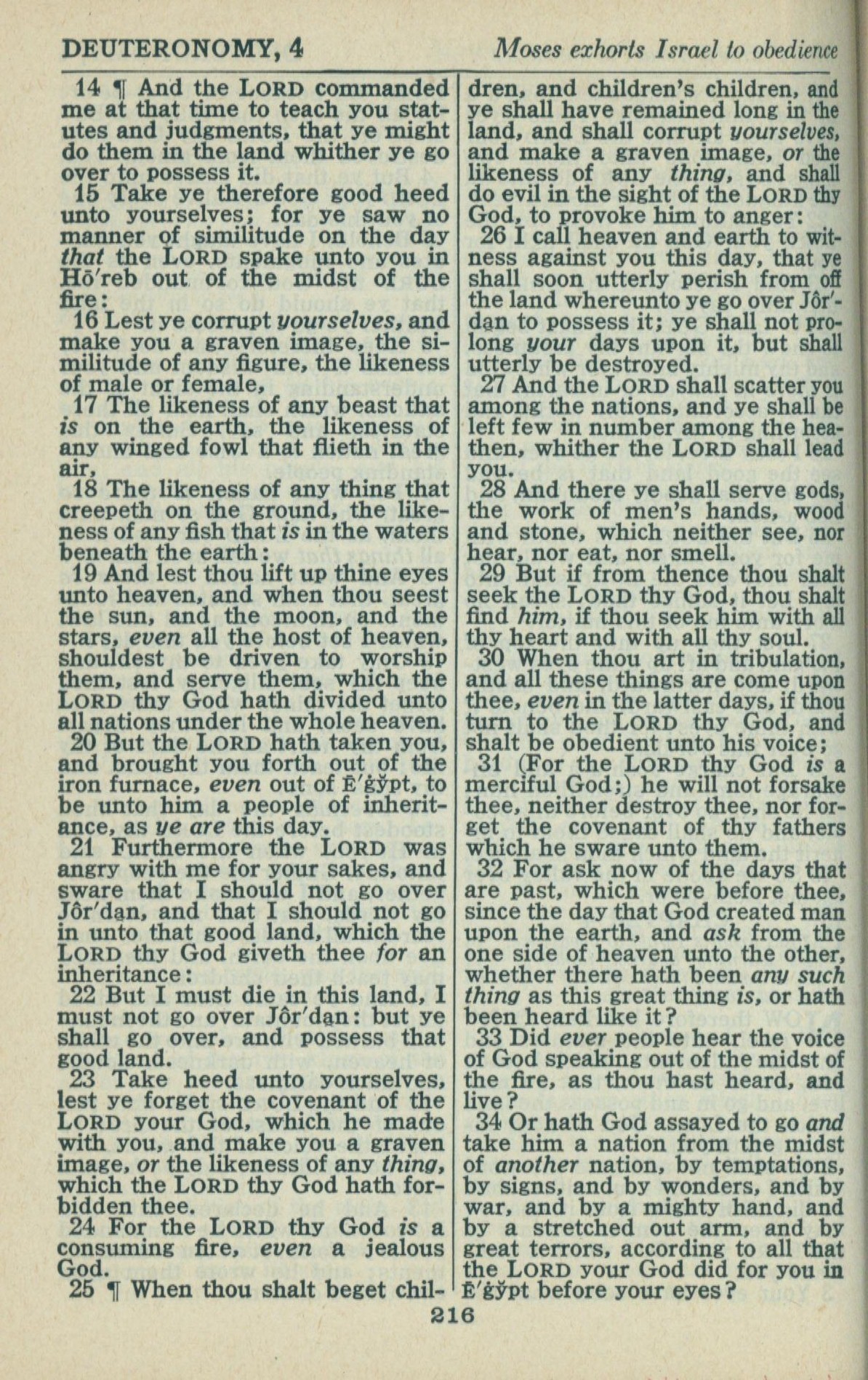 1946年King James Version 申命記 4 章 14 節到 4 章 34 節