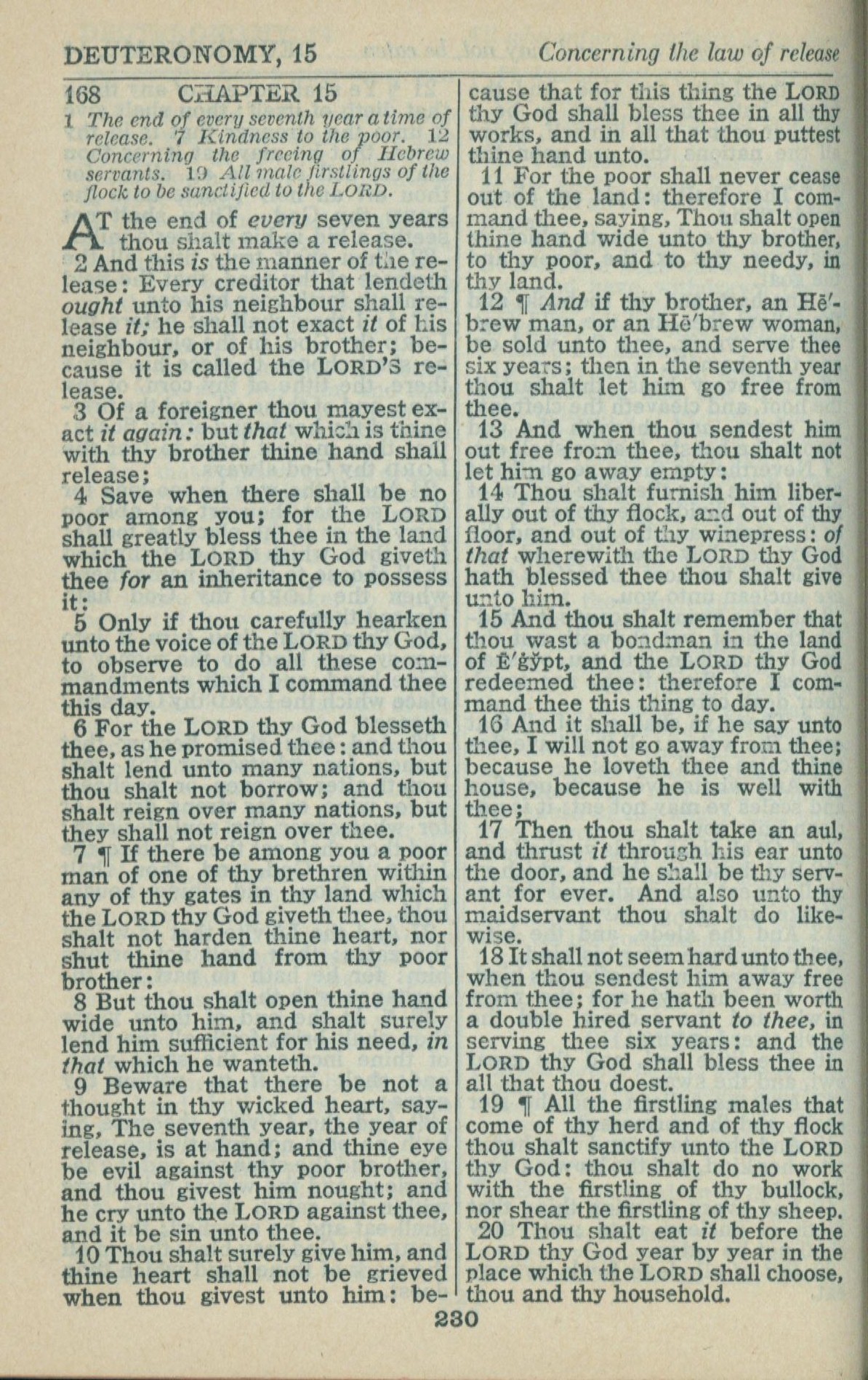 1946年King James Version 申命記 15 章 1 節到 15 章 20 節