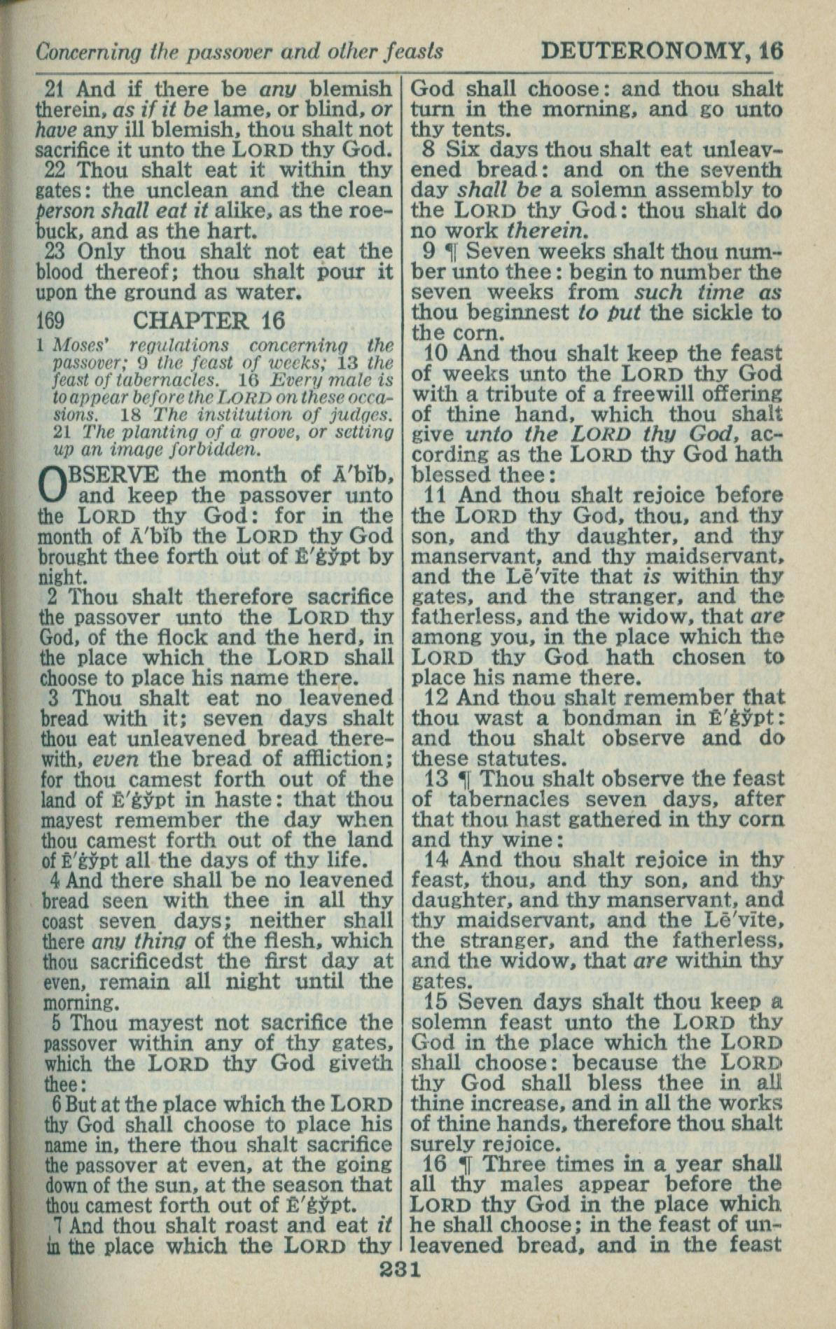 1946年King James Version 申命記 15 章 21 節到 16 章 16 節